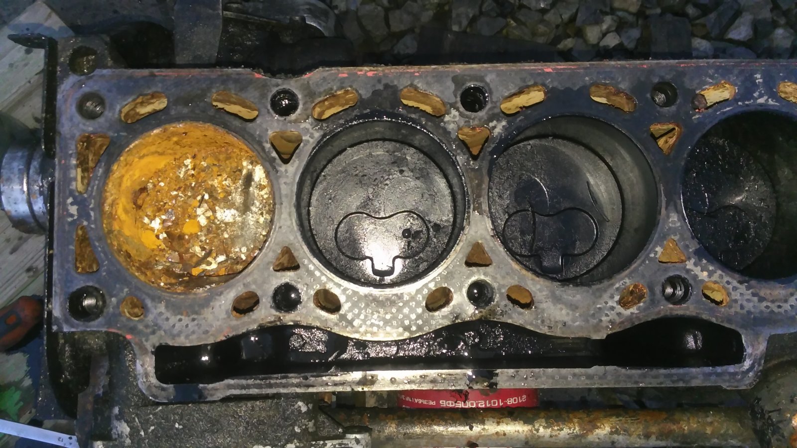 Голова осталась родная (на другой голове были трещины между клапанами, но опресована, продана, работает).