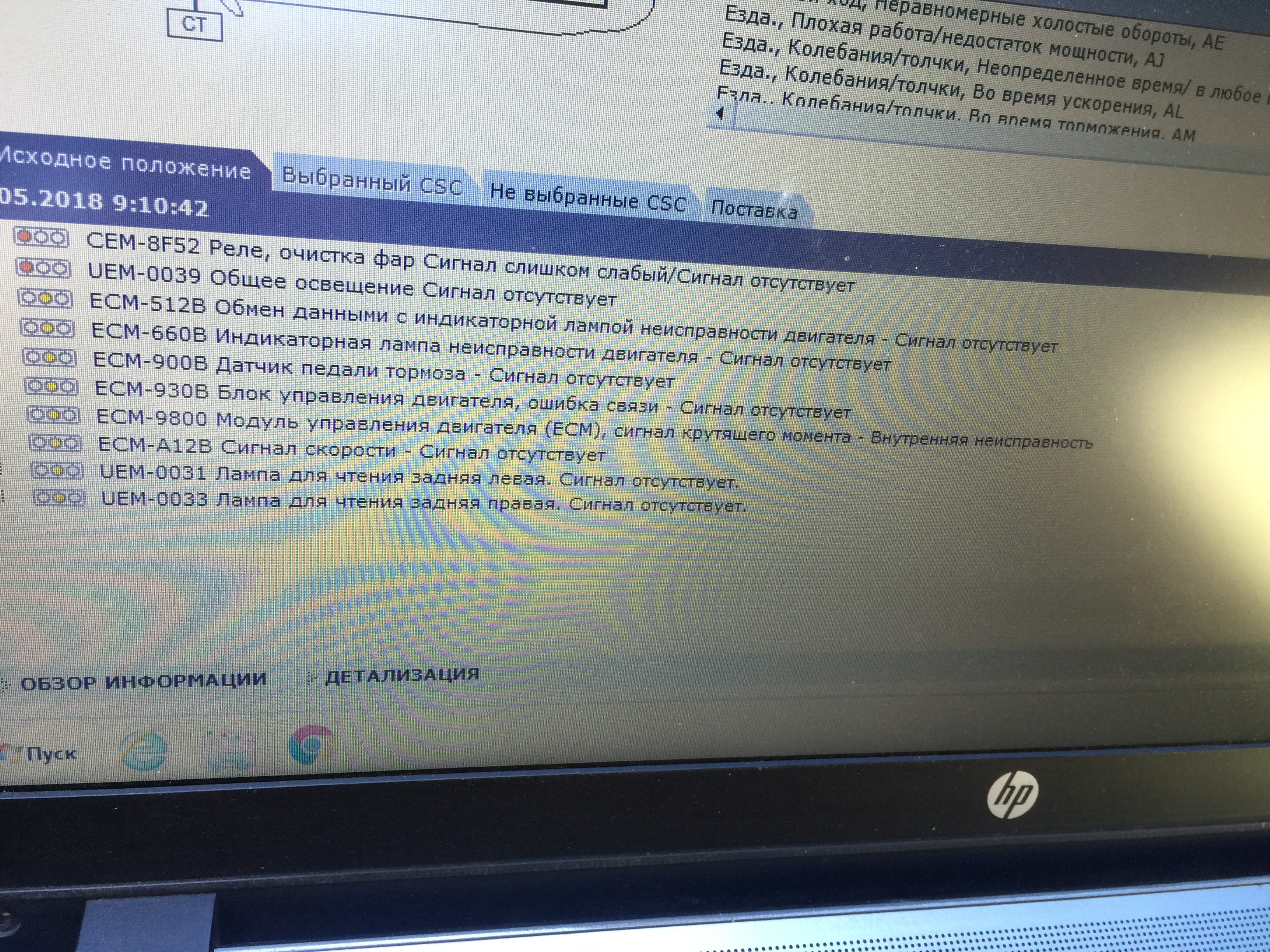 С утра машина завелась с возобновлением ошибок, симптомы те же.