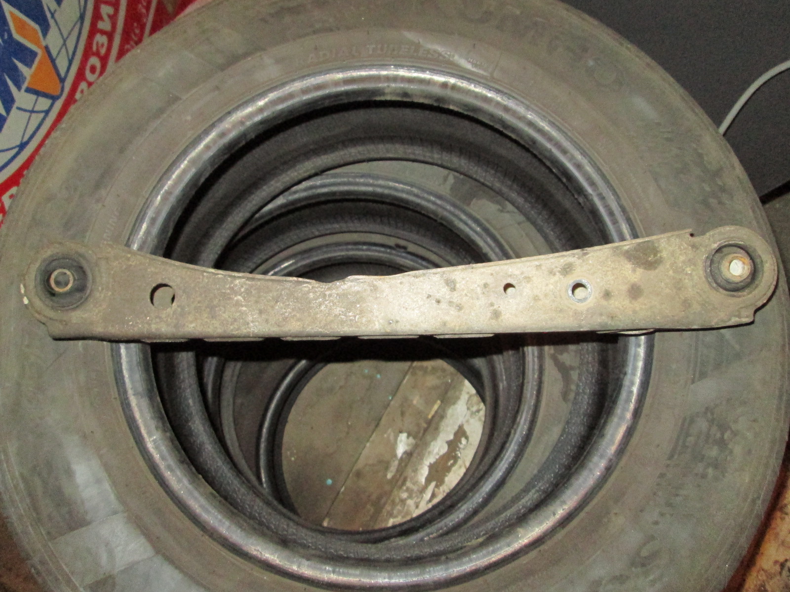 Возле гаража, который снимаю - эстакада. Загнал, подпер досками колеса на правой стороне. Позаглядывал. На правом заднем продольном рычаге передний сайлентблок (он не цельный, с прорезями) мертв: внутренняя втулка отслоилась и сожрала резину сайлента.