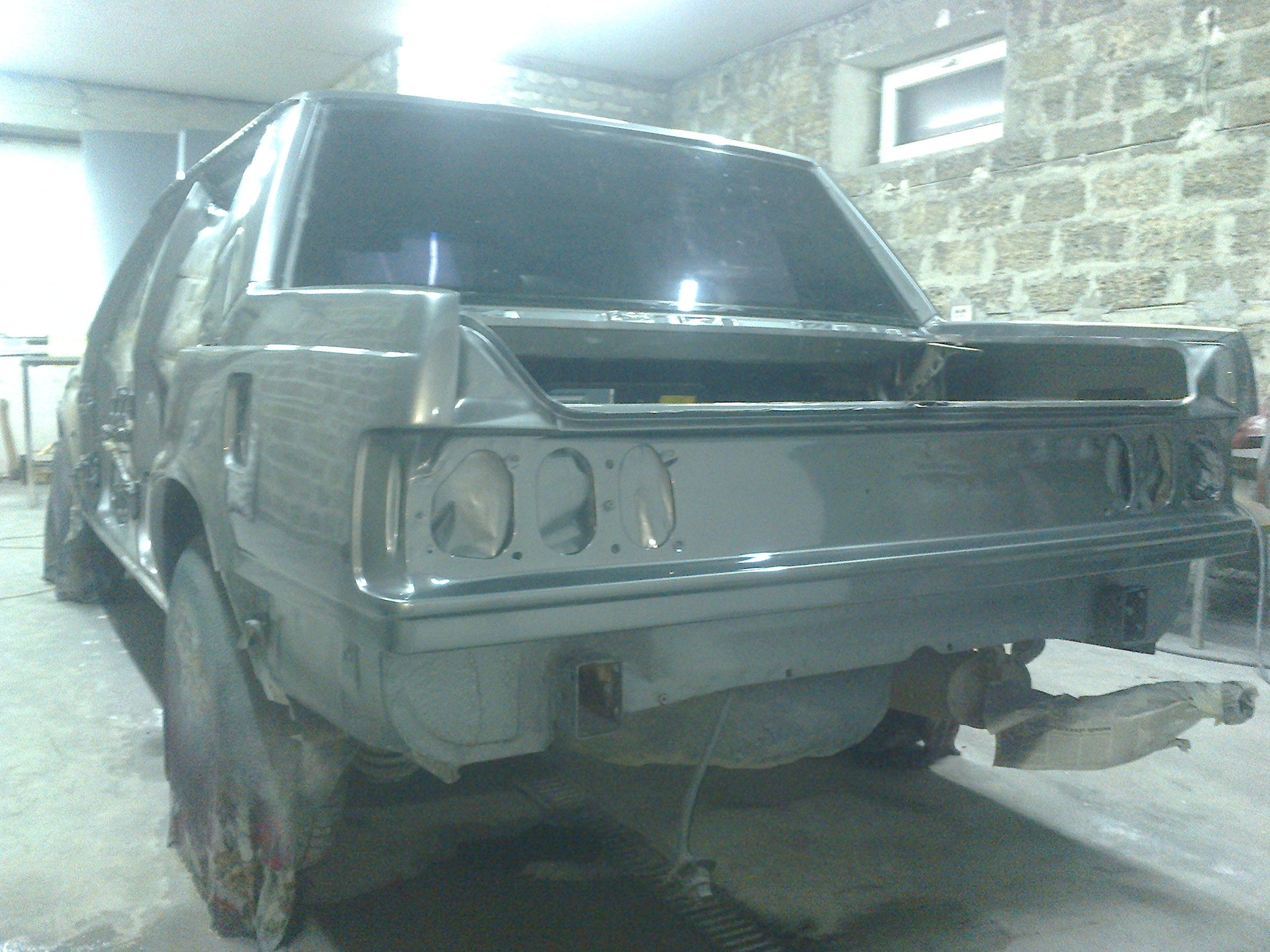 Кузовные детали сняты перетерты и загрунтованы в два слоя мобихела.Состояние железа хорошее поэтому шпатлёвки ушло совсем немного и то в основном "финиша" и "нитры".Неожиданно горбатым оказался капот.Его пришлось рихтовать и местами накладывать минимальный слой шпатлёвки.Ситуация с задними крыльями нефатальна но неприятна.Их пришлось перерихтовывать и работать уже стекловолокном.Состояние задних арок и внутренних полостей задних колес еще сносное поэтому предпочел максимально сохранить родное железо.