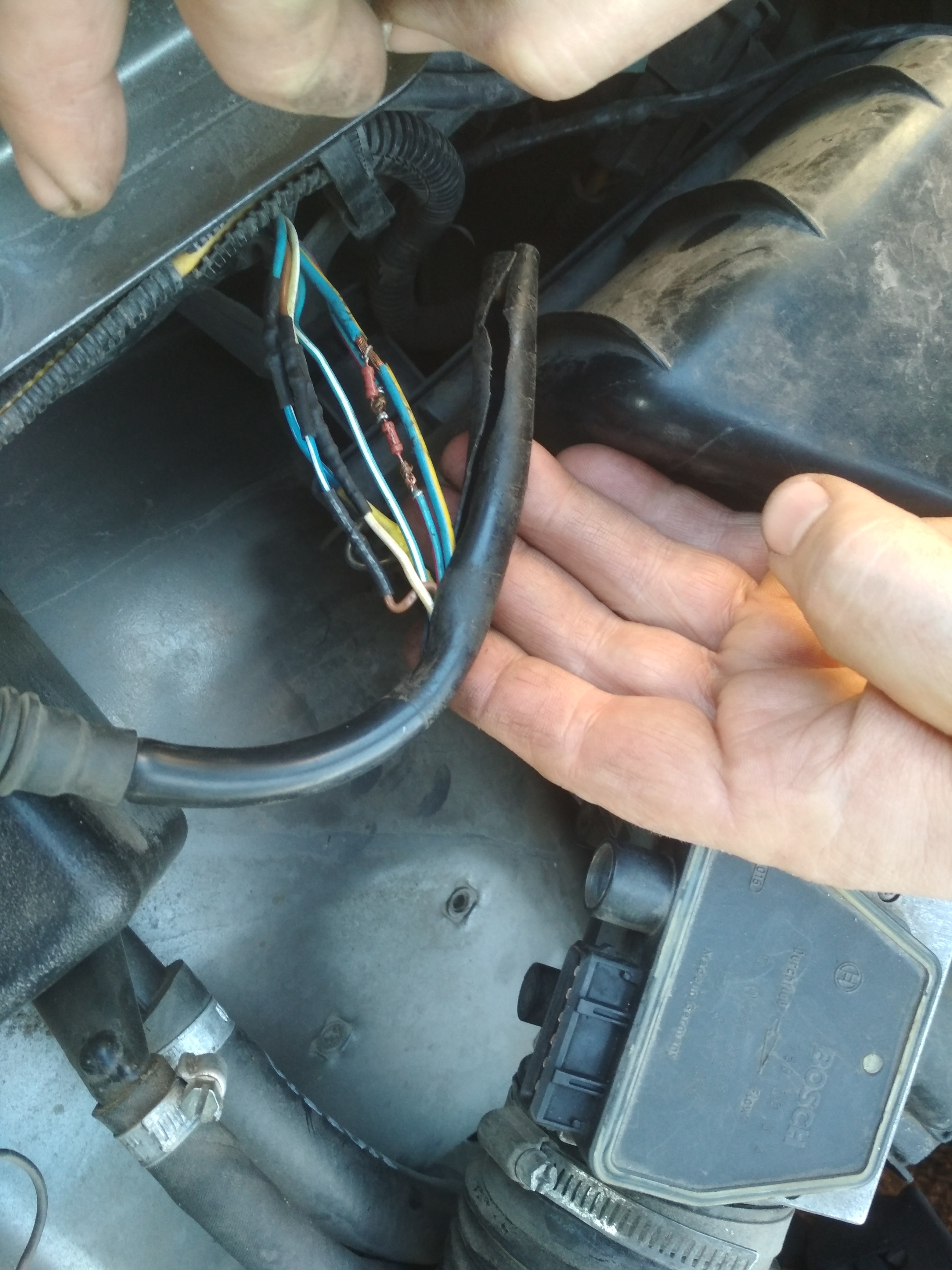 Обнаружил что пошевелив провода идущие к ДМРВ, меняется работа двигателя, размотав изоленту увидел примотаное сопротивление