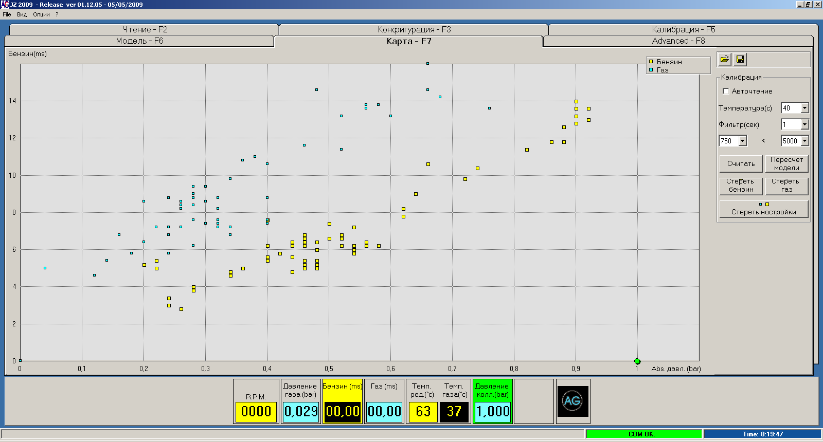 Получается, все это время ездил на ненастроенном ГБО, т.к. график газа всегда был значительно выше графика бензина. Претензий к технике быть не может, она старая. Буду приводить в порядок.