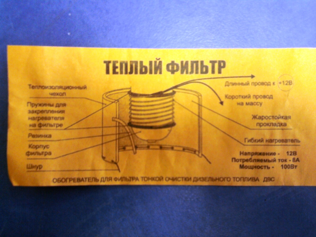 В качестве подготовки к земе, на фильтр тонкой очистки был установлен электрический подогреватель (бандажный). Утром из гаража выехал хорошо. На улице -10, в гараже +5. Дистанция до работы 10км была пройдена без проишествий.