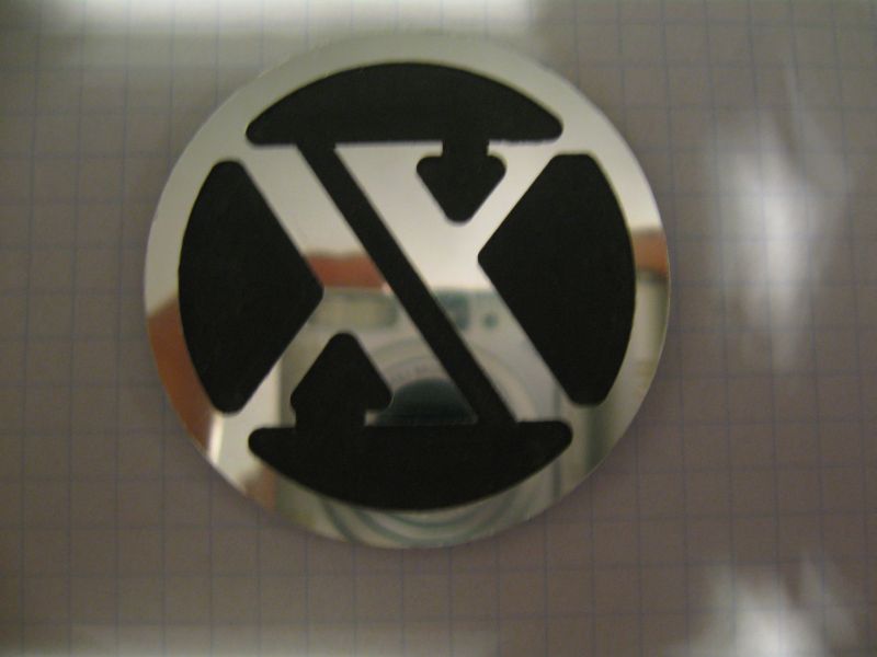 Вобщем облущился в некоторых местах значек, ужасно было некрасиво, решил попробовать восстановить. Взял оракал (самоклеящуюся бумагу, используется в изготовлении рекламы) с серебристым отливом, ободрал обе стороны значка, кроме среднего квадрата, вырезал оракал полосками чуть больше самого значка, приложил и обклеял, где нужно, подрезал и подгонял. Потом как все заклеял, вырезал посередине очень острым скальпелем и вот результат. Фоток было много, но кудато они с телефона исчезли :-( , вот сегодня сделал фотку на телефон чтоб показать. Значек восстанавливал в начале зимы, тьфу-тьфу до сих пор держится.
