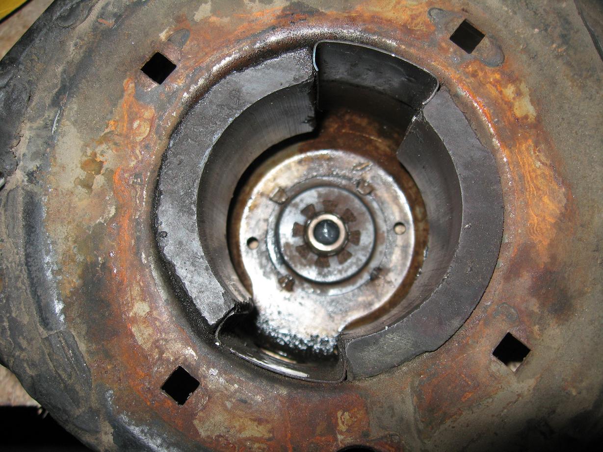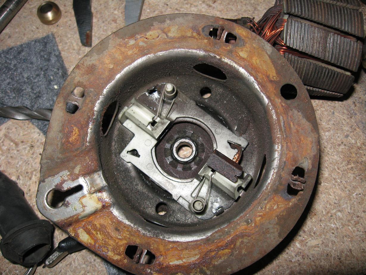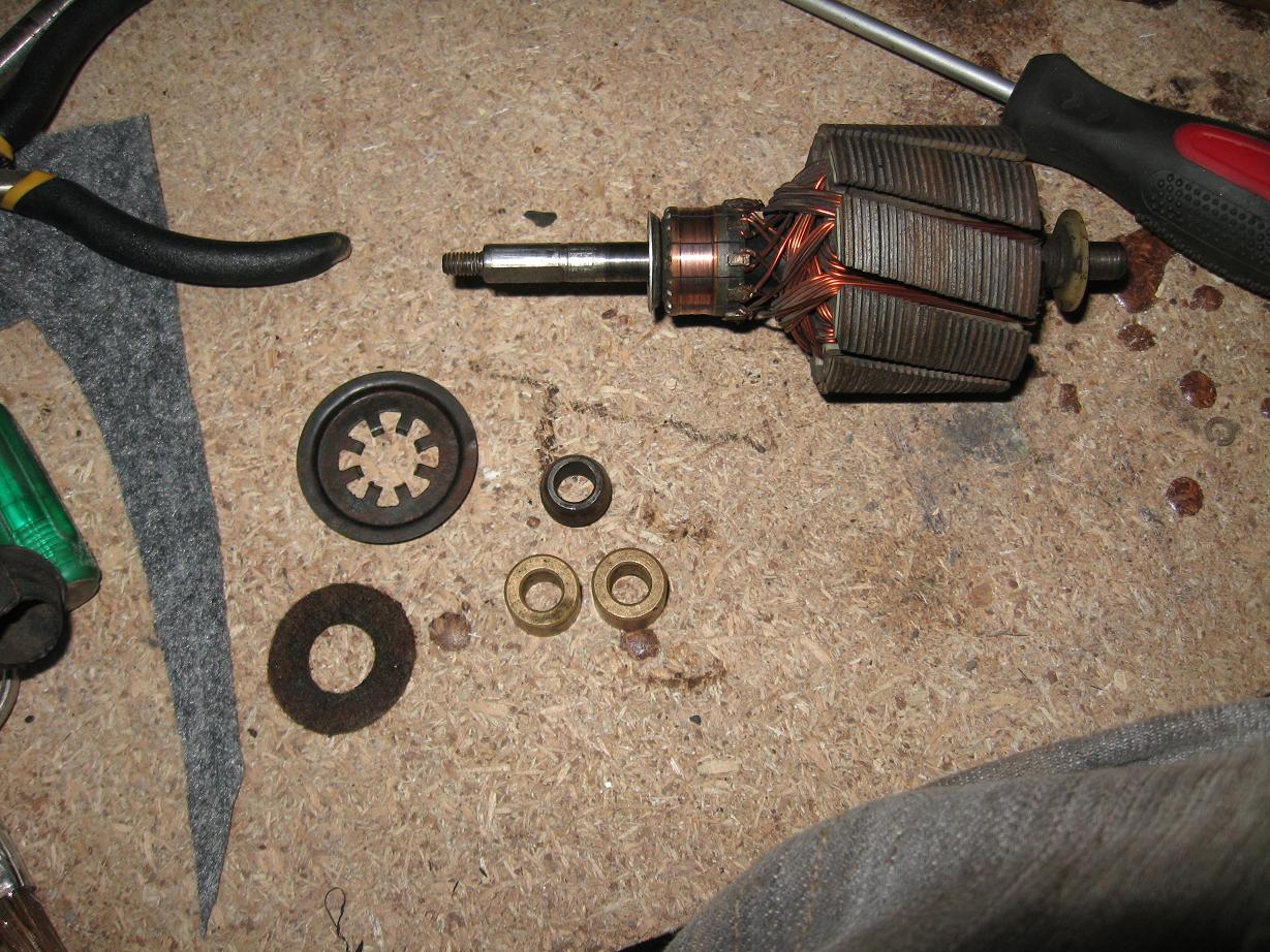 разобрал моторчик(думаю все знают, что нужно отогнуть усики и тогда он разбирается) и увидел там удручающую картину! выработка в нижней втулке просто ужасная! естественно отсюдова писк, вибрация, повышеный ток при работе.