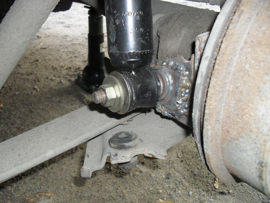 в багажник немного хлама накидал и сзади пассажиры сели - скорость 110-115 (выше не стал набирать - тяжеловато для моего мотора), так вот идет достаточно плавно, отработка неплоха, но есть еще один момент - у меня второй лист рессоры установлен, на 3-ей фотке он как раз еле заметен.
