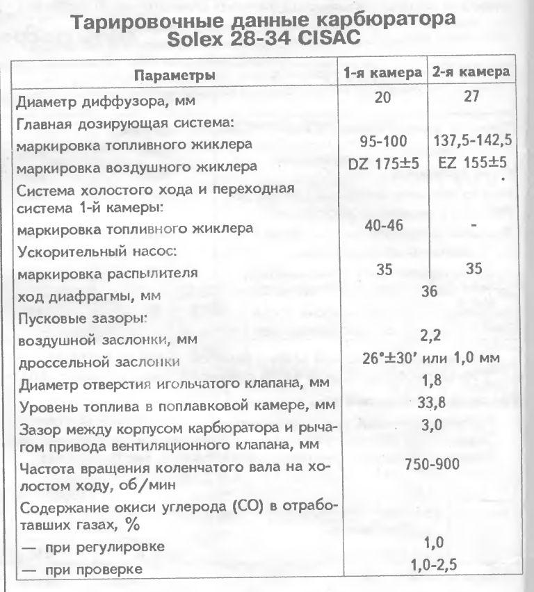Маркировки жиклеров на родной карб. Solex 28-34 Z 10 CISAC