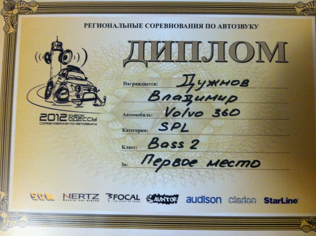 vovkavolvo360 писал(а):18 августа прошли в Одессе соревнования по автозвуку.я занял первое место!