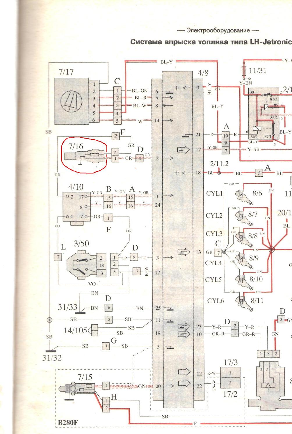 Датчики на мозги и на прибор разные. Если прибор VDO, то он работает "в другую сторону" - упавшая за ноль стрелка гоаорит о замыкании. Для начала снять провода с датчика и посмотреть на реакцию, позамыкать, если ничего не будет смотреть провода, разъёмы О и М, прибор. Я тут нарыл малёхо инфы, думаю, поможет. 7/7 - датчик на прибор; 7/16 - датчик на мосх. Я их и разъёмы отметил, чтобы дело быстрее было. Удачи! P.S.- сопротивление датчика прозвонить холодного и тёплого - должна быть конкретная разница.