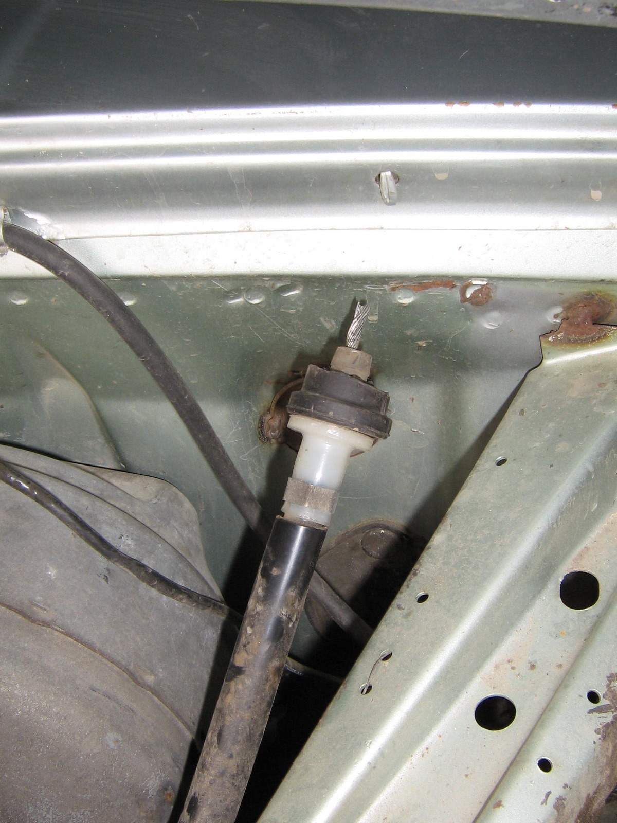 Ну и чтоб добить читателей! Прикол по сцеплению! Самое прикольное - это шайба с разрезом, приваренная на место где дырка в кузове, куда просовывается трос. Я так и не понял ее предназначение. Просто такое впечатление, что родную разворотили или зубилом или прямым попаданием снаряда. А потом приварили эту шацбу. Короче таких вот уродов нужно в лесу на деревьях вешать!