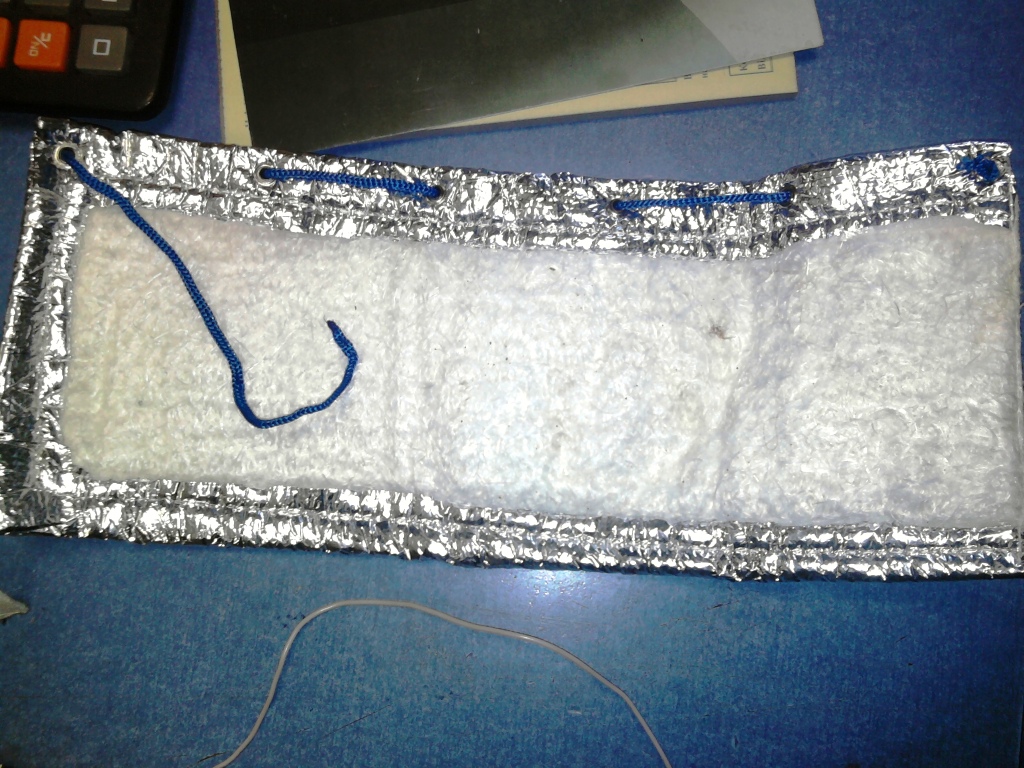lexa писал(а):Купил девайс самодельный за 40грн. Второй отошлю на тест Стасу. Состав: Фольгированный полизол , внутри негорючий уплотнитель,стягивается резинкой от трусов на липучке, нагревательный элемент кусок провода с металической оболочкой , мощность 100вт - 8а. Буду тестить.