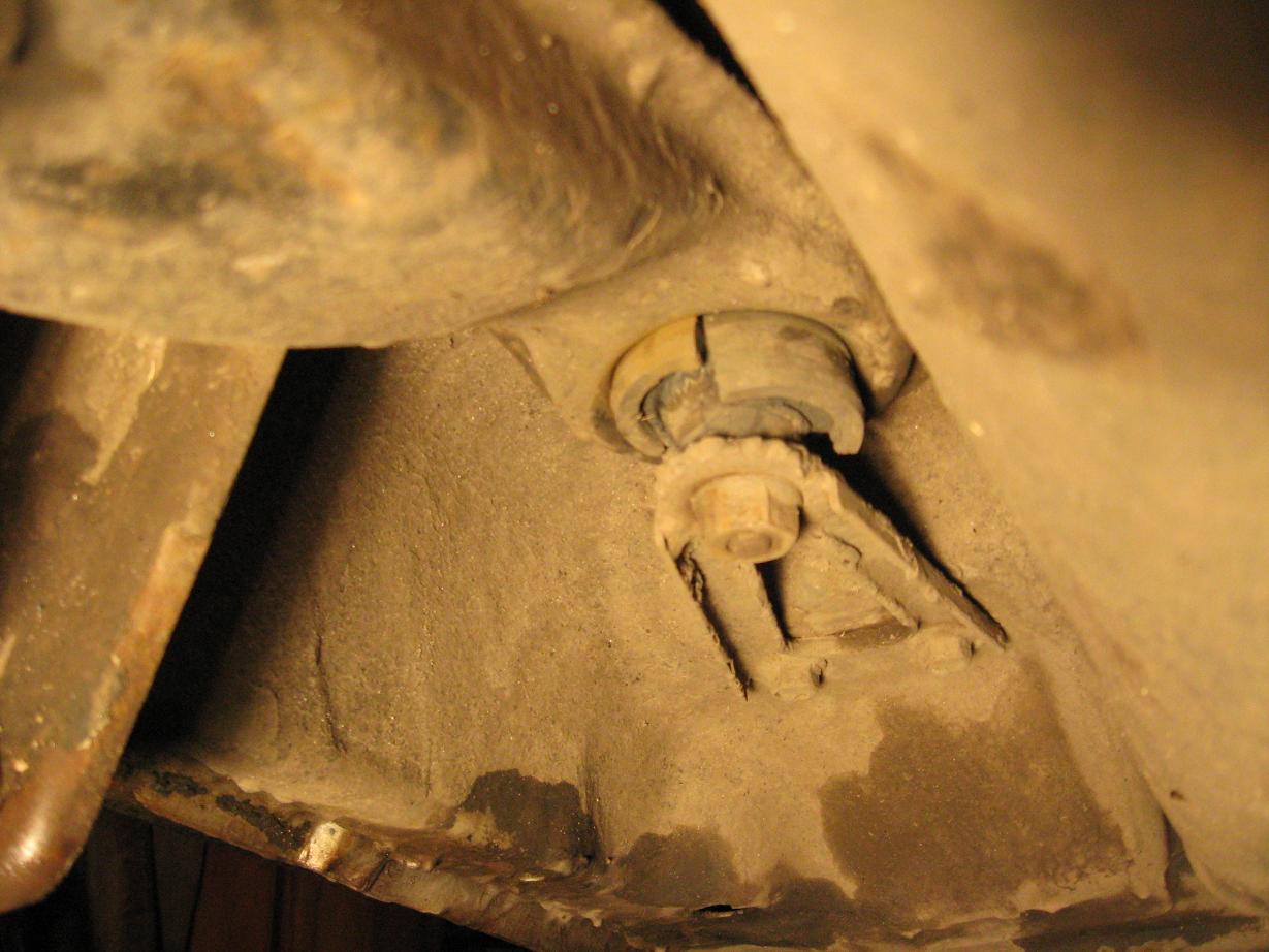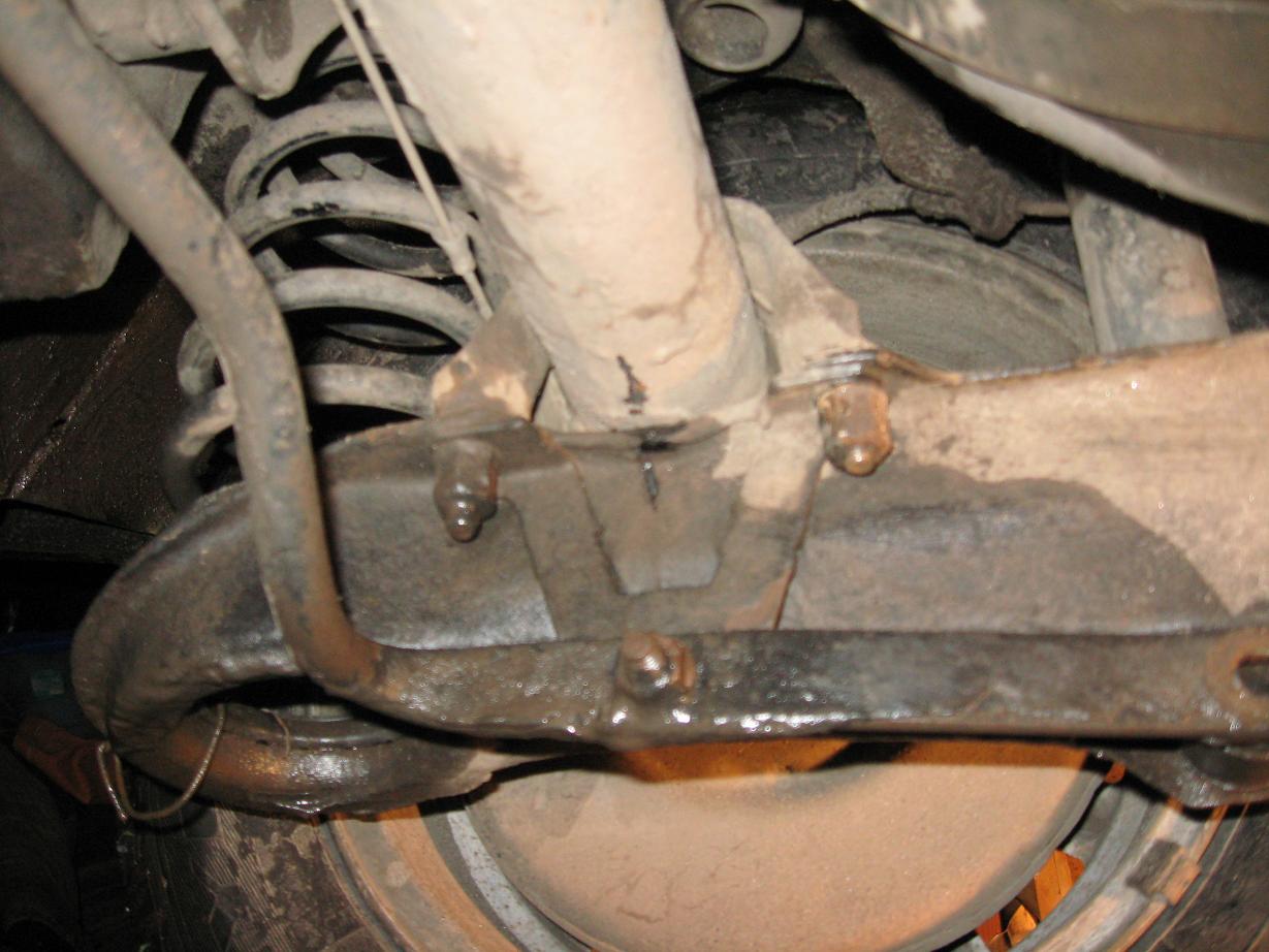 шаг третий: на всякий случай ставим метку на мосту относительно хомута (обычно резинки там так приростают к мосту, что иначе уже не соберешь!) и снимаем рычаг. при этом видим какой ужас сотворился с сайлентом.