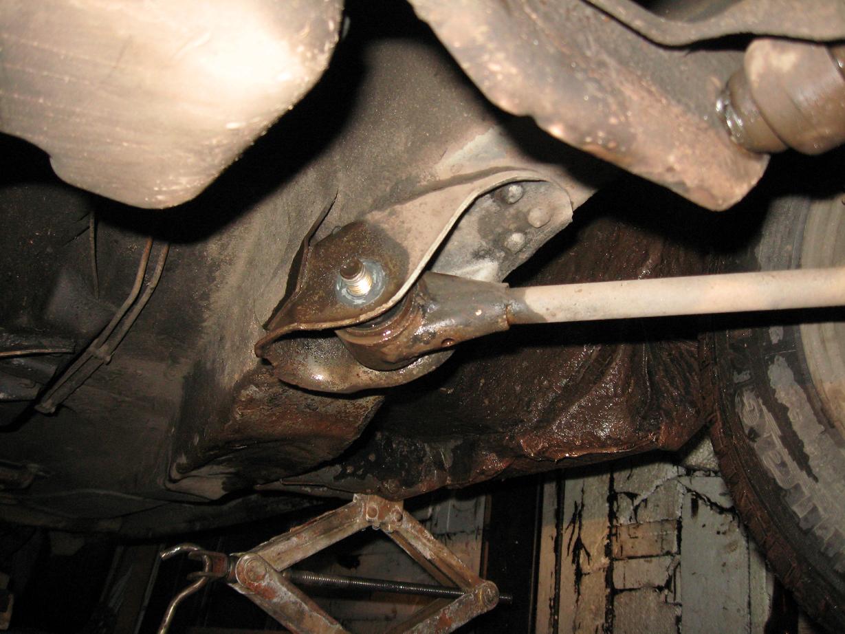 шаг третий: подымаем машину и откручиваем болт крепления продольного рычага с поперечным.