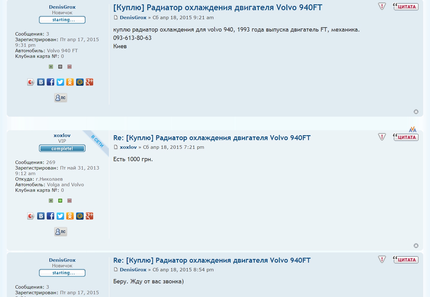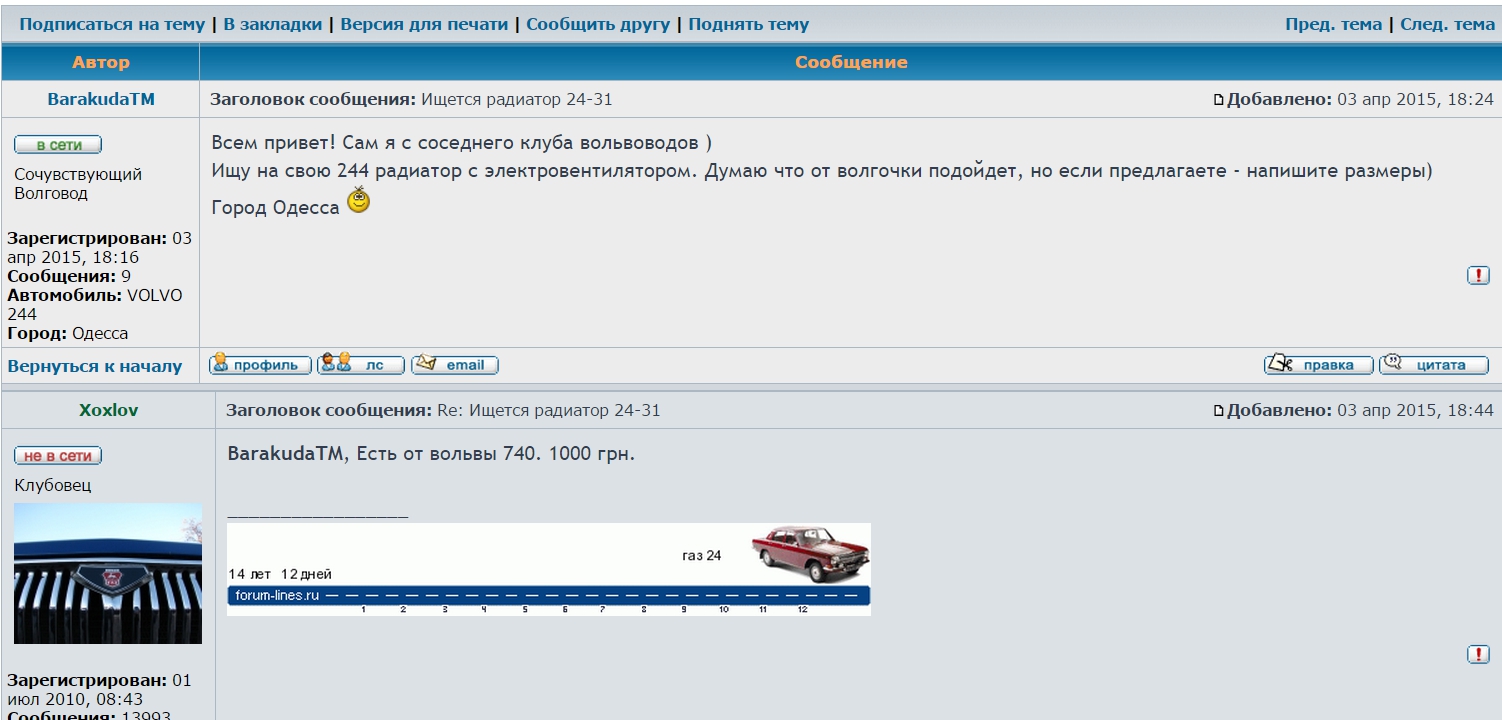 Иван создал тему о разборке праворукого ХС 90,помните?Я поинтерисовался,почем потолочный телевизор,если это он.Иван ответил,что таки да,но цена 3000 грн.На мой ответ,что это слишком (я погуглил) он сказал что к нему в комлекте даст чейнджер,сабвуфер,беспроводные наушники к телеку и пульт дистанц...Думаю,была не была,никаких уточнений о характеристиках,подойдет/не подойдет не было и в помине,вот когда я за зеркало в салоне спросил-тогда да,сказал что оно мне не покатит...Деньги ИВ сказал ему на карточку скинуть наперед,наложка категорически отверглась,а так как я раньше относительно благополучно купил у него новый радик и б/у вентилятор,то согласился.И тут началось...В начале пришел монитор и вместо чейнджера-обычный ДВД проигрыватель на один диск и куча проводов,плюс антена неработающая для радионаушников,все это собрав на весу,проверил-работает(окромя антены конечно),ладно...Звоню-все рассказываю,про однодисковый ДВД вместо чейнджа,про то что если это телик,значит должен еще быть где то ТВ тюнер с антеной,вот тут меня футболят к какому то Роме из Тернополя,мол я не причем-его косяк.Ладно,с трудом дозваниваюсь к этому челу,начинаю говорить,сначала слышу все вышлем,потом что он не понимает о чем речь,мол надо было самому туда поехать(700 км в одну сторону) и искать,где оно там все установлено,эту же песню мне начал петь и ИВ.А да,предлагал дать 200 грн на дорогу...Это он называет теперь-"масса вариантов".В итоге приходит мне распределительная коробка на антену (она там одна на телефон и радио),радиоантена на наушники(хотя сами они отсутствуют),на этот раз рабочая правда и еще пульт от чего то...Опять пытаюсь связаться и Романом и Иваном,не то мол,Иван пообещал что со своей стороны тоже надавит на этого"компаньена",Рома мне сказал прямым текстом,что бы я от него отстал,так как деньги я платил не ему,и что пошел я вместе со своим корытом,раз у меня не ХС 90,как у него,и весь свой Вольво клуб захватил с собой,вот тут мне реально стало обидно,но через время в качестве утешения мне пришел обещанный саб...Я его представлял типа как у всех,добротный ящик,классное звучание,тачка то с Англии,но каково же было мое удивление,когда он оказался оригинальным именно от ХС90 с подключением по оптоволокну!Это блин не зеркало в салоне,почему не сказать было?Но его можно присобачить думаю,нашел в инете преобразователи с тюльпана на оптику.Но дело не в нем,это так сказать товары в нагрузку,суть в том,что это присылалось в течении полугода,начиная с 10 июля прошлого года и до сих пор я не получил того,за что заплатил,потому и говорю ИВ-недобросовестный продавец,все остальное-это тема отдельного разговора.Алежон,мне ничего не надо высылать,я со временем сам все подкуплю.а показать как все работает смогу даже разложив все на земле,просто я за честность.К машине просто руки не доходят,езжу каждый день,успеваю только периодически обслуживать и ремонтировать что сломается,остальное-в проэкте.
