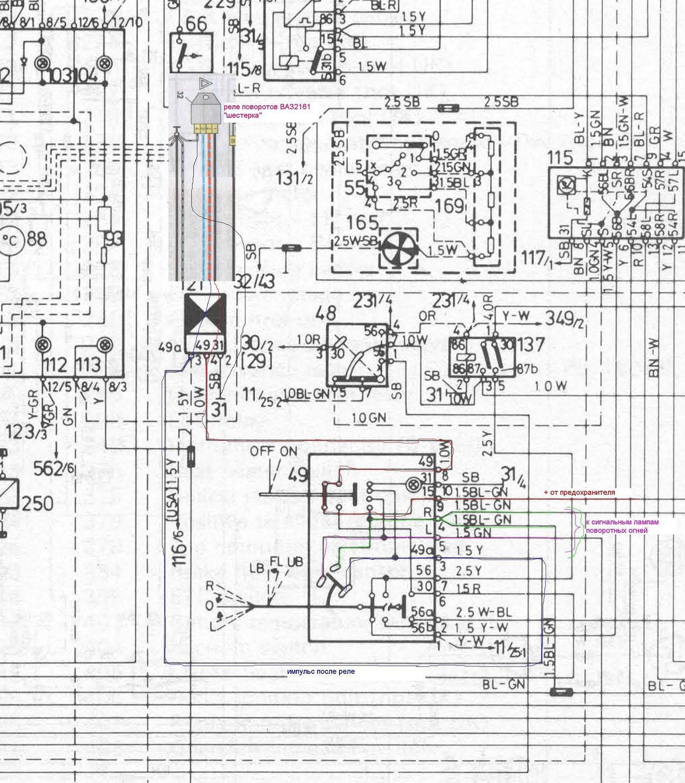спасибо за совет -оч помог - пока оригинал не могу достать-а надо ездить "сегодня".в машине есть копеечный реле поворотов и бу свои тоже там -не мог бы ты рассказать по номерам - что с чем соединять?