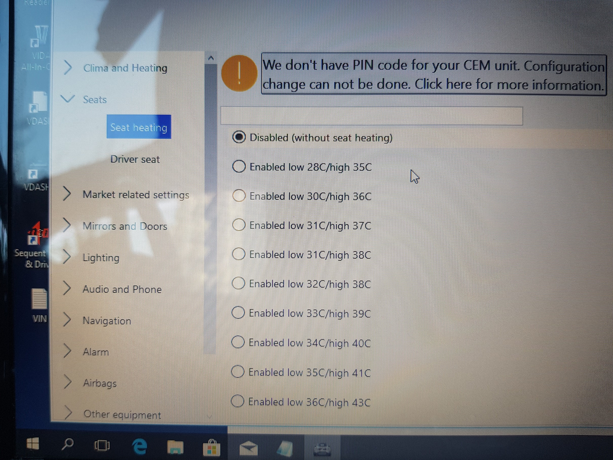 В моём авто стоят передние сиденья без подогрева. Разводка проводов под сиденьем есть, кнопки включения подогрева есть (были закрыты заглушкой). Планирую купить кожаные сиденья с подогревом. Как програмно включить подогрев (он выключен в авто в компе. Проверил программой vdash).