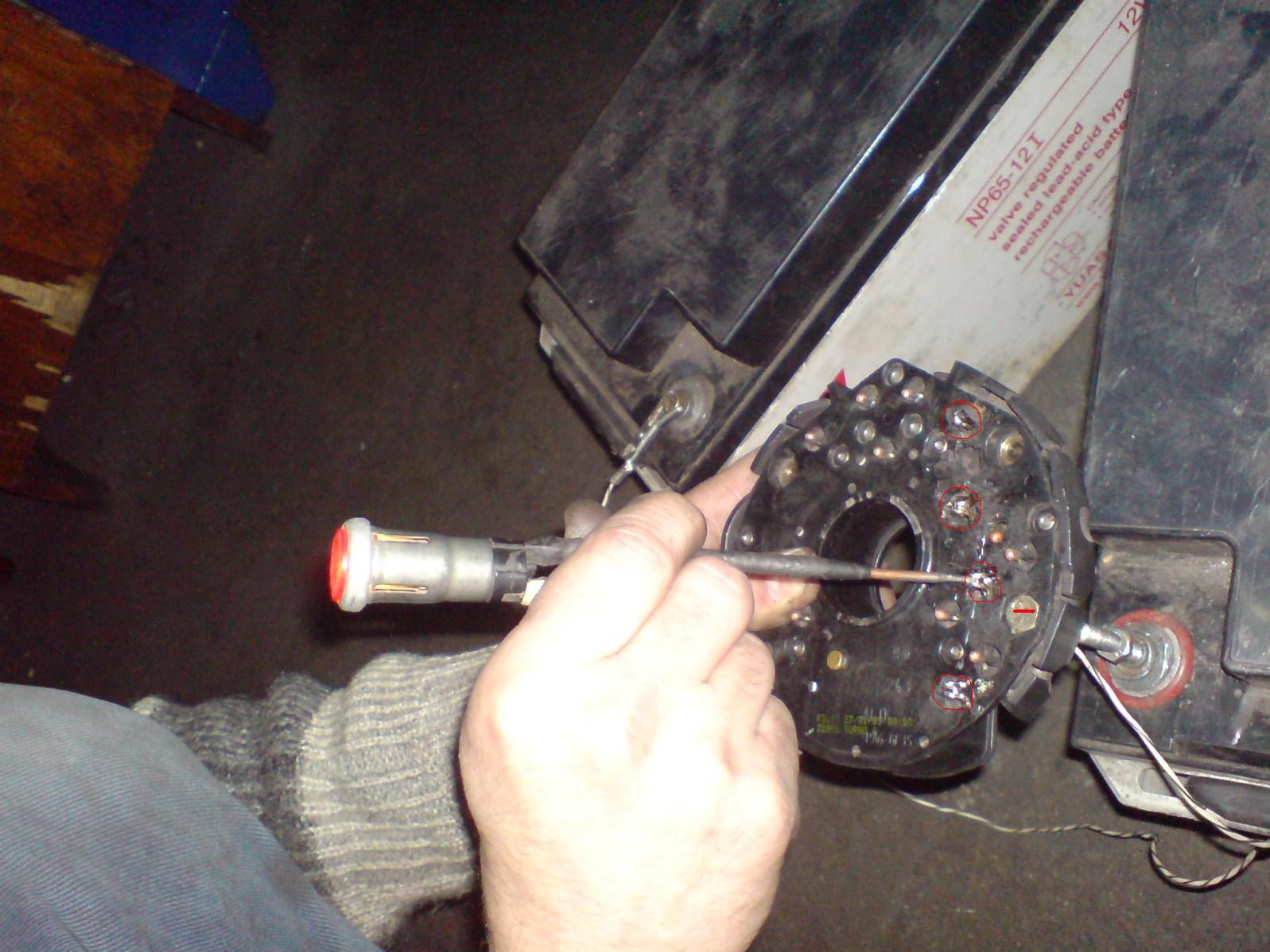 Откручиваем 2 винта крепления подковы (выпрямителя, диодного блока).