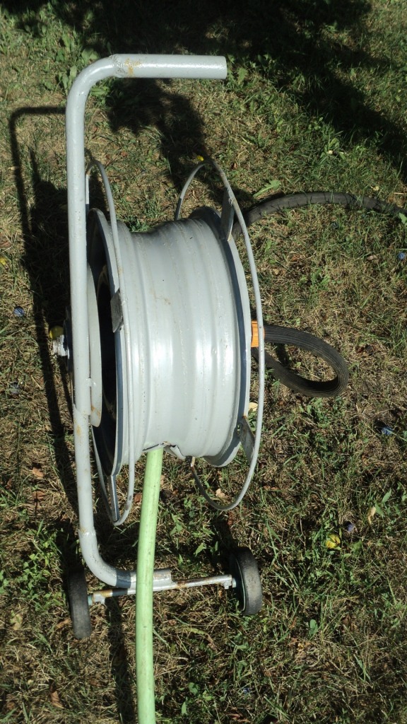 Как то достало меня вусмерть таскать постоянно 30 метров шланга поливочного, или когда осенью надо машину помыть иди в сарай разматывай, потом сматывай, он весь грязный и я тоже, потом всю зиму валяется под ногами и мешает, короче - достало!