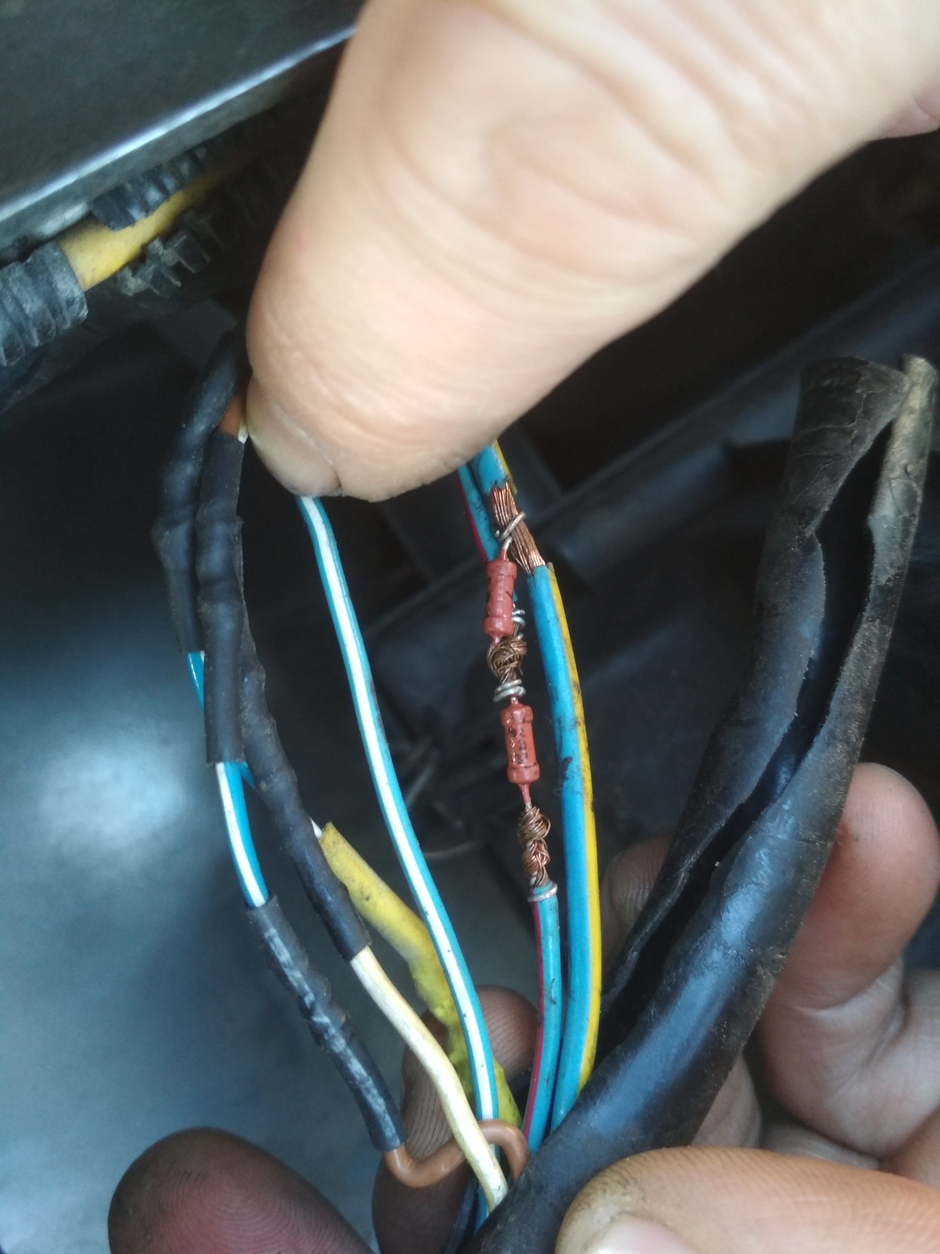 Обнаружил что пошевелив провода идущие к ДМРВ, меняется работа двигателя, размотав изоленту увидел примотаное сопротивление