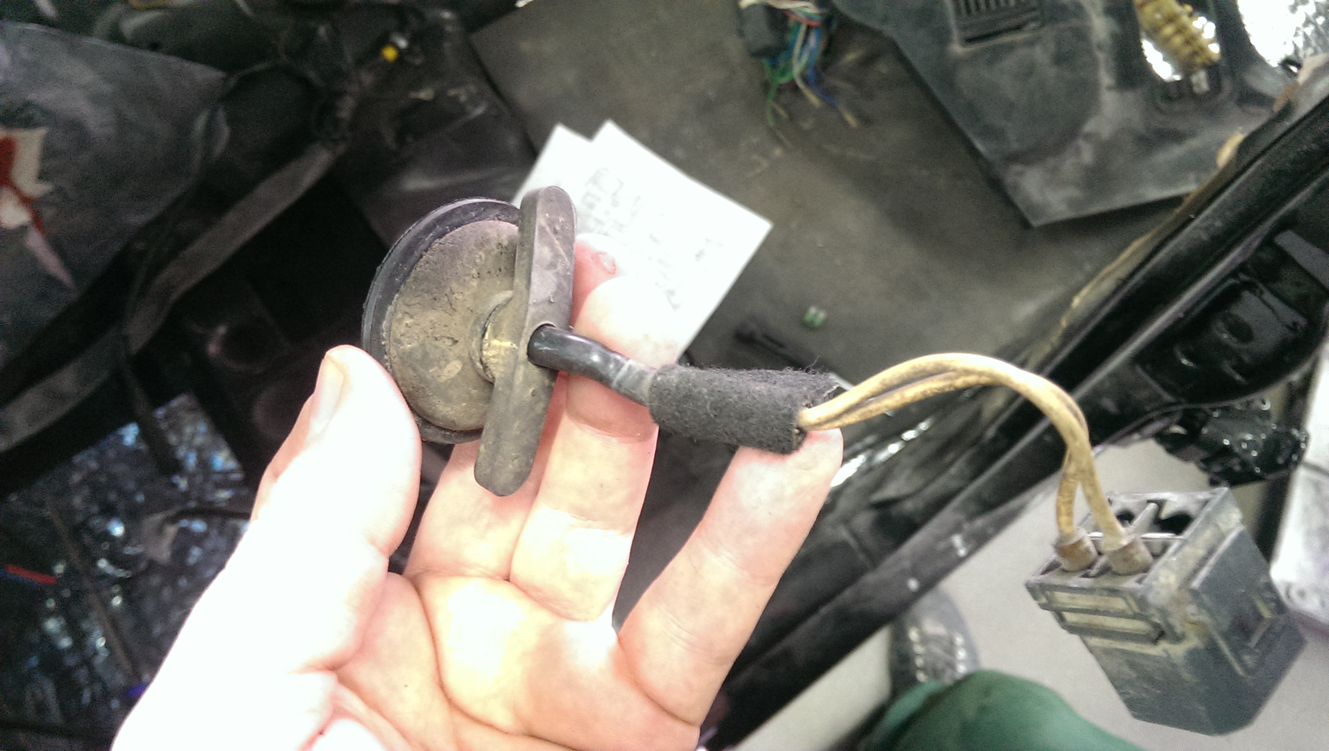 в родном исполнении провод огибает и через кулису идет к жабке задней передачи, этот провод у меня успешно перетерся и при включении заднего хода ничего не загоралось, решение было подсмотрено в 940, от туда был демонтирован этот провод с резиновой заглушкой