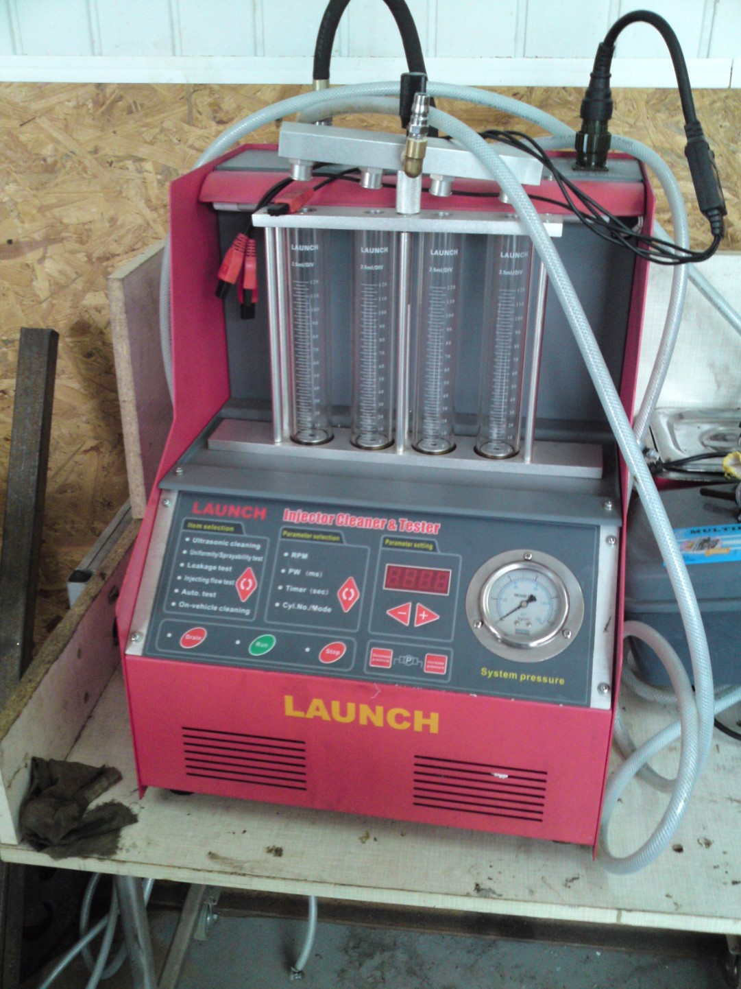 После замены я заехал на схождение колес, прямо рядом с "Гараж"ом, где мне успешно оборвали гайку в районе тяги заднего моста. И за это сделали схождение без денег. Я вернулся в "Гараж" и Дима заварил болт наглухо. По моей просьбе. Когда дело дойдет до замены сайлентблока, тогда и "развинтим" болгаркой. А это прибор, на котором мне подняли компрессию в цилиндре с 4 до 10.