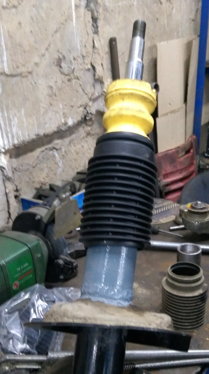 Плюнул я на это всё,купил картриджи Б4 Бильштайны от дорестайла по 45 баксов и поехал к знакомым обезбашенным дрифтерам,которые не боятся пилить и варить)))Полдня работы с поездками к токарю,по деньгам на круг с новыми опорными подшипниками СКФ и пыльниками дешевле новых стоек сомнительного качества.