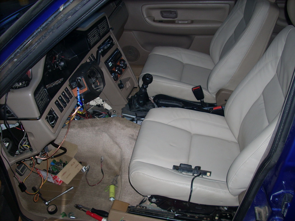 я все не решаюсь такую же втулить, много ли гемора с проводкой? Вижу ты предохранители оставил как на 740-940. Скажи как закрепил подголовники задние, полку переделал или....?