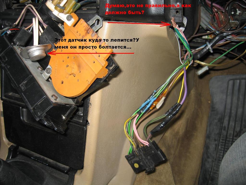 то что висит, это датчик температуры салона! он вольвовский, но не такой немного. по этому в штатное место не стает.