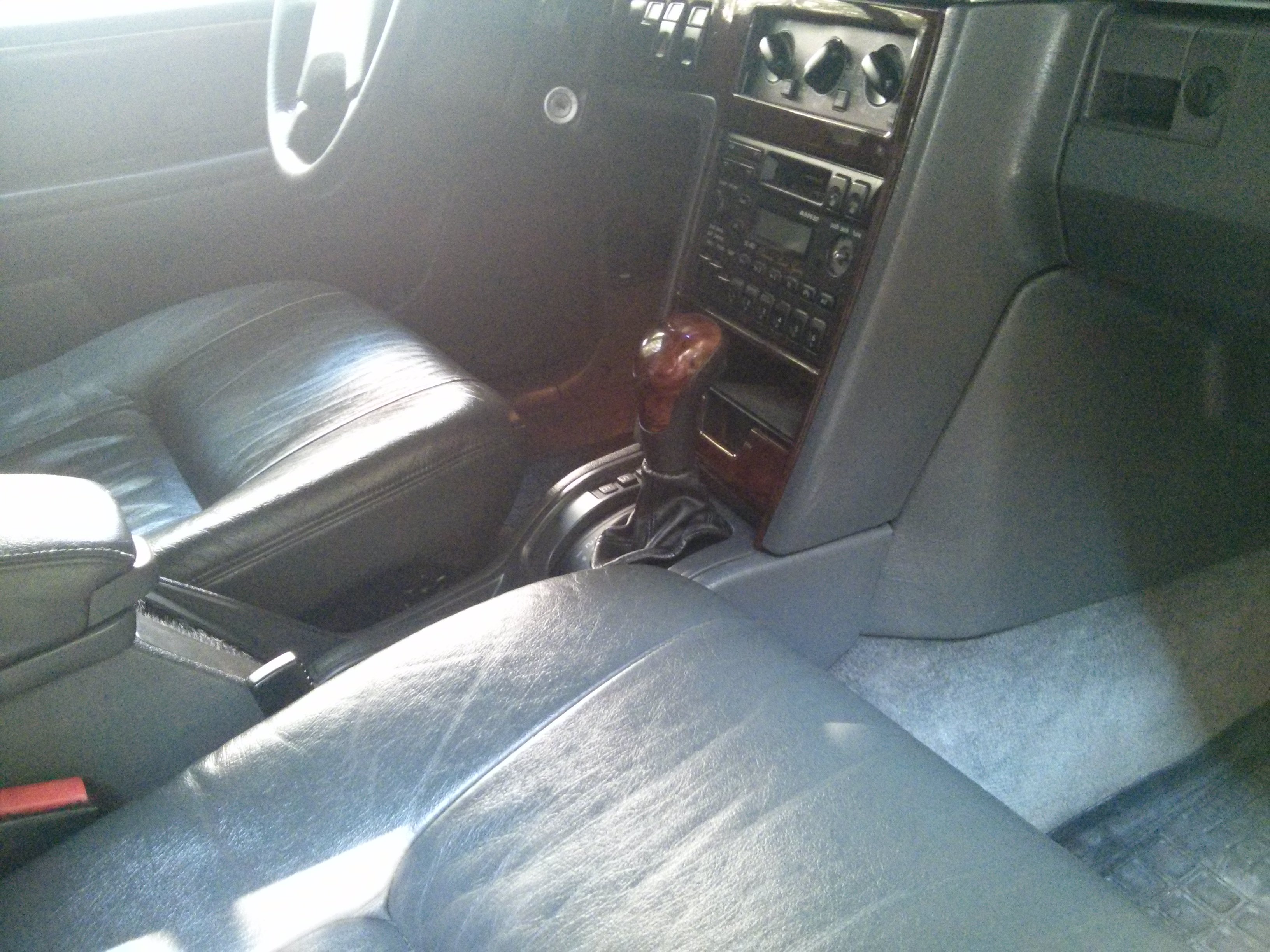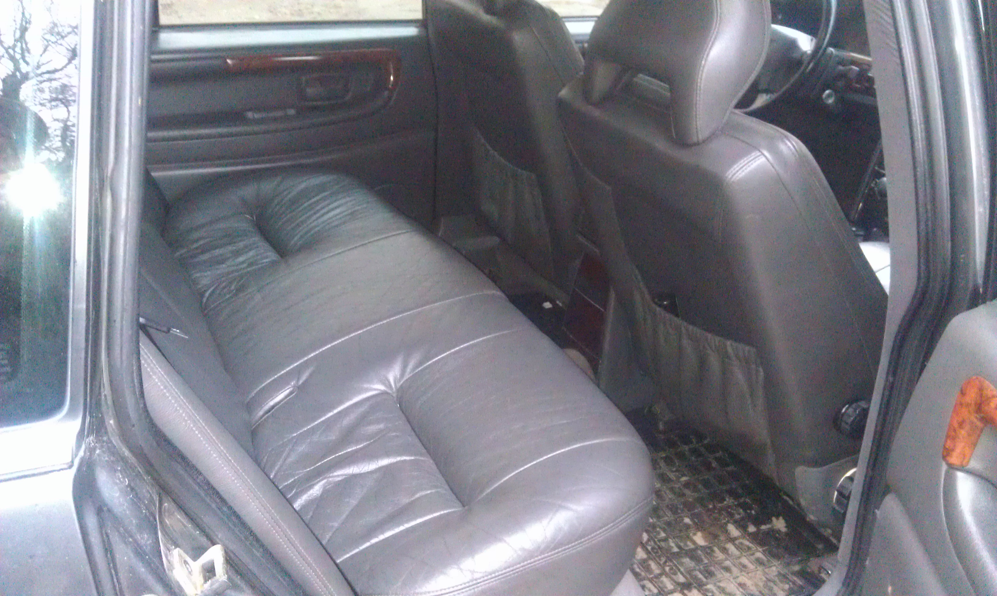 Салон требует чистки, проклейки антискрипом (какие-то м.даки обесшумку дверей делали, покажу в отдельном посте). Водительская карта в отличном состоянии, а все остальные с типичной болячкой — складки под молдингом стекла. Дерево панели потрескалось (додумались, блин, шпон на пластик клеить!) "дерево" в картах смотрится очень дешево. Вроде-бы рестайлинг 1995 года был призван разделить модели 940 и 960 качественно, но на деле кажется наоборот. Если на 940 у дверных карт есть тонкая поролоновая подложка, то на картах 960 винил натянут сразу на картон.