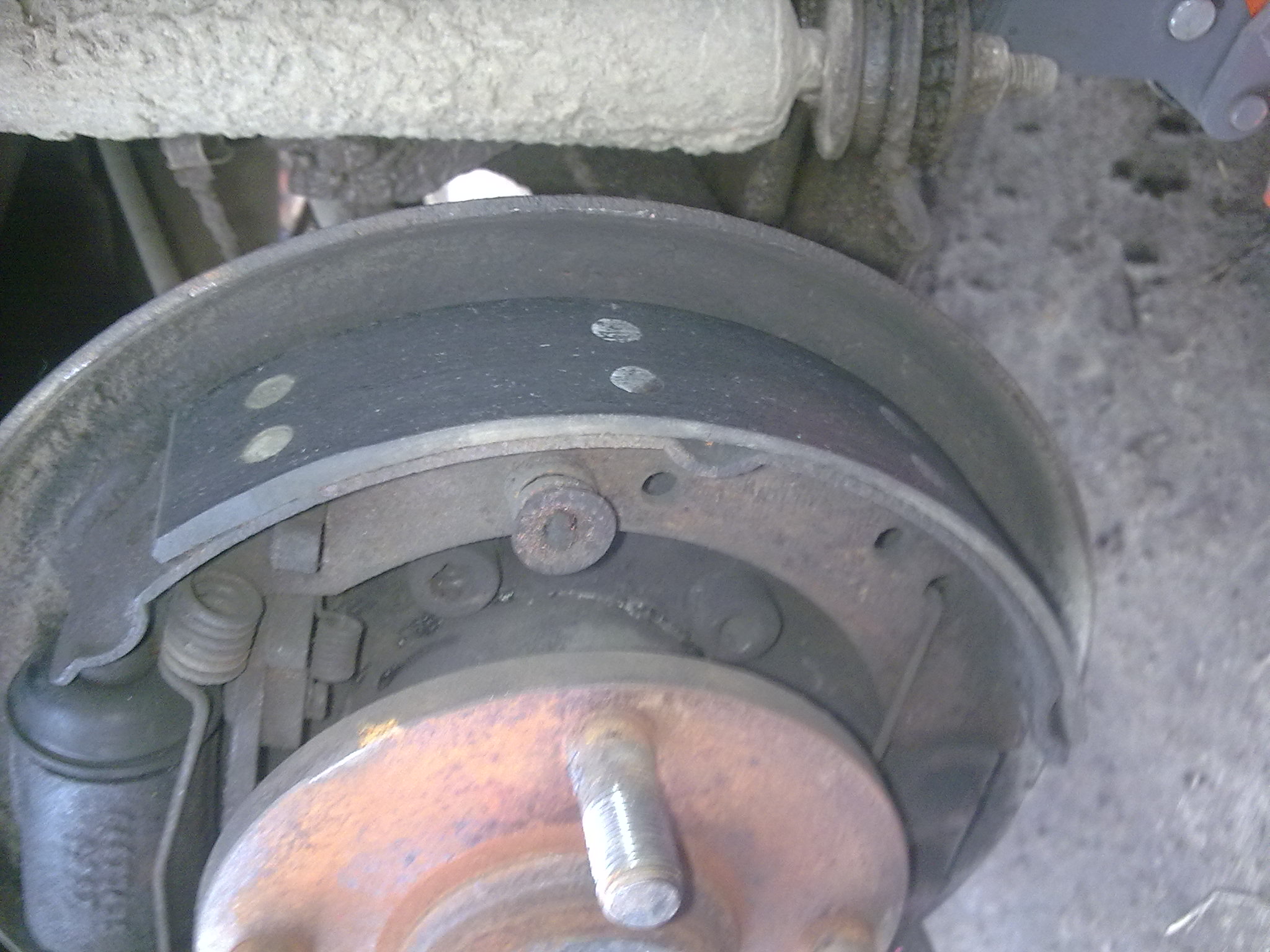 Періодично шумить праве заднє при гальмуванні -- заклепки вже дістають до барабана (клепав сам 2..3 роки тому). Товщина накладок по центру 3 мм.