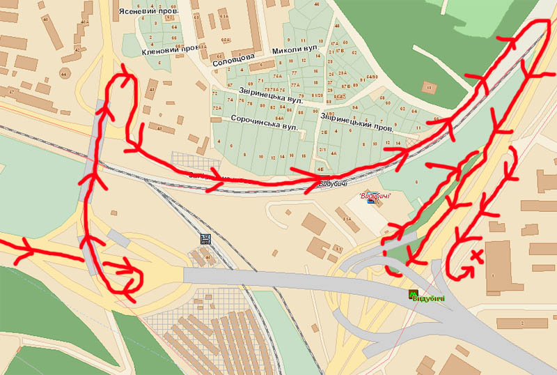 alexbild писал(а):подскажите деревянному - смотрю я на схему развязки на Выдубичах (по стрелачкам на схеме) и убей не пойму, если я по Саперно-Слободской еду, у меня что нет шансов на Инженерную съехать, все пути ведут на мост?