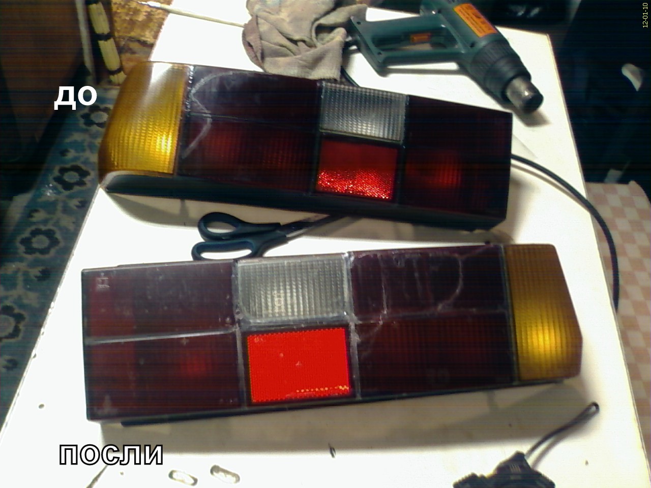 !!! с прошедшими вас и с наступающими вас... была здесь темка по поводу стопаков ,как видем зима нас не балует сплошные дожди а гараж у меня далековато приходится "Вольвушку" держать возле дома во дворе , так я очем из за дождей машинка превратилась в аквариум токо што без рыбок , заливало со стороны ляды поменял уплотнитель но это не помогло очередная поездка в гараж просушка кузова феном и результат стопаки лопнувшие, пока финансы поют романсы решил от реставрировать свои . переклеив кое где прошел силиконом и обтянул ORAKAL 640 и вот результат....