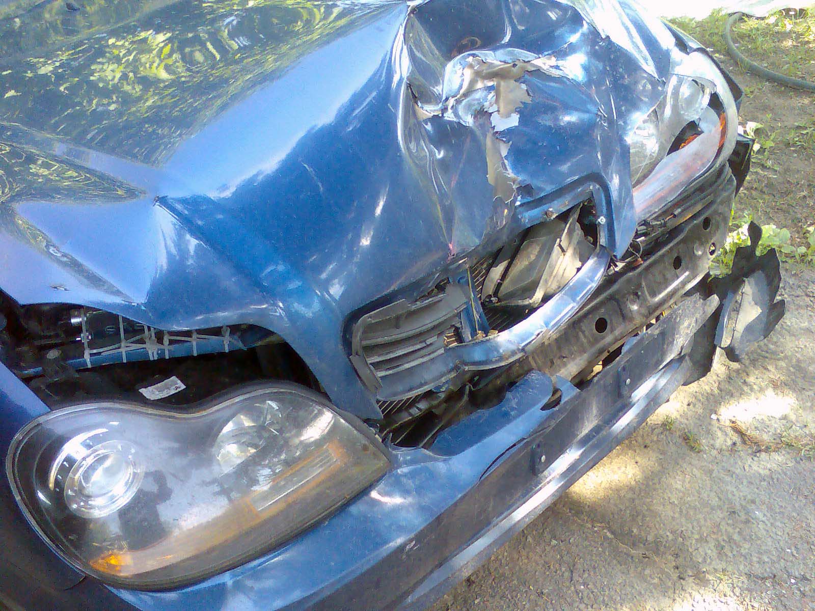 Так сложилось что родственник попал в ДТП, виновник (на праворульной машине) выезжал со второстепенной на главную, и мой родственник что бы избежать столкновения направил авто в столб, скорость была не большая, произошло это в Одессе на перекрестке где был выключен светофор, в результате этого инцидента авто родни получил вот такие повреждения...