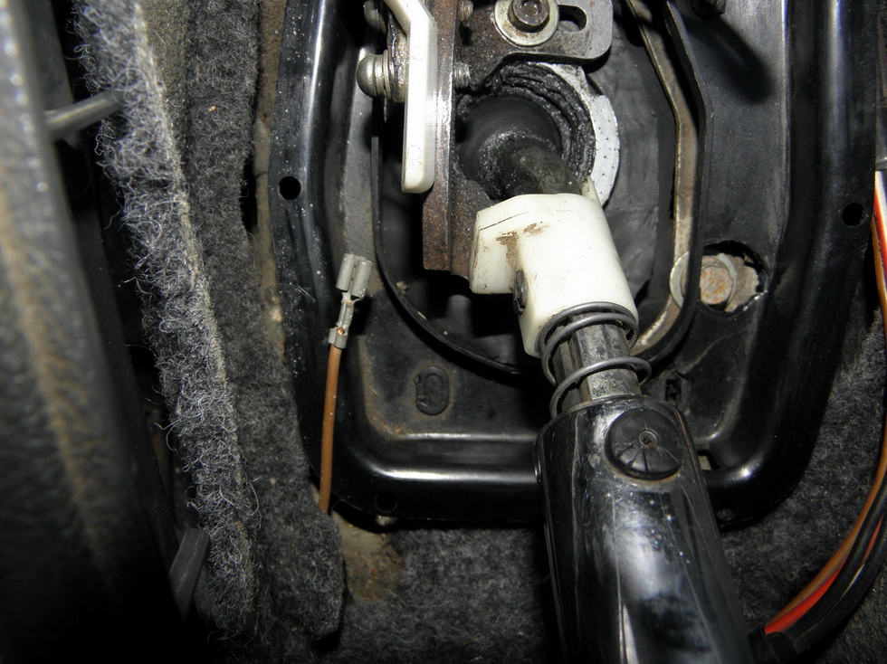 Коричневый провод возле ручки КПП немного коротковат для подключения к ручнику (сними кожух с ручника и посмотри может там есть ещё один) больше всего идет на замок ремня безопасности водителя. Под сиденьем переднего пассажира есть три провода для контроля пристегнутого ремня безопасности, два уходят в сиденье третий в замок ремня безопасности.
