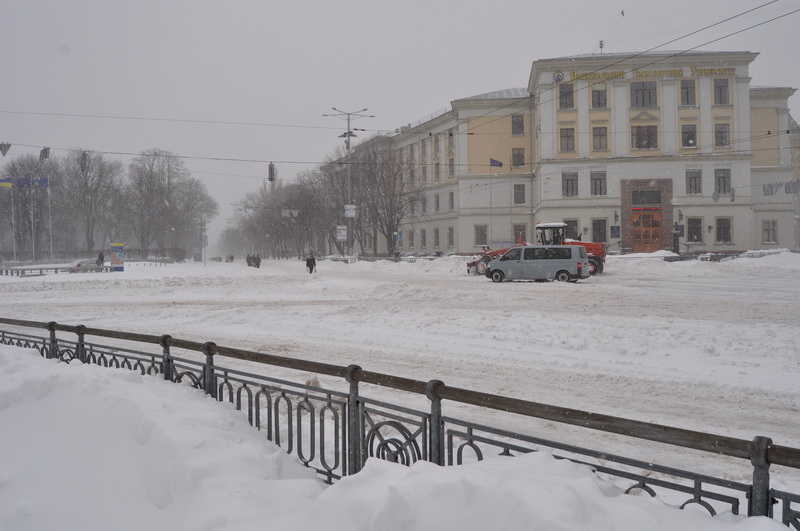 Сегодня поехал на работу (Львовская площадь). А транспорт не ходит вообще ни какой. Далее фото по маршруту 18 тролебаса от Майдана до Львовской часов в 10 утра...