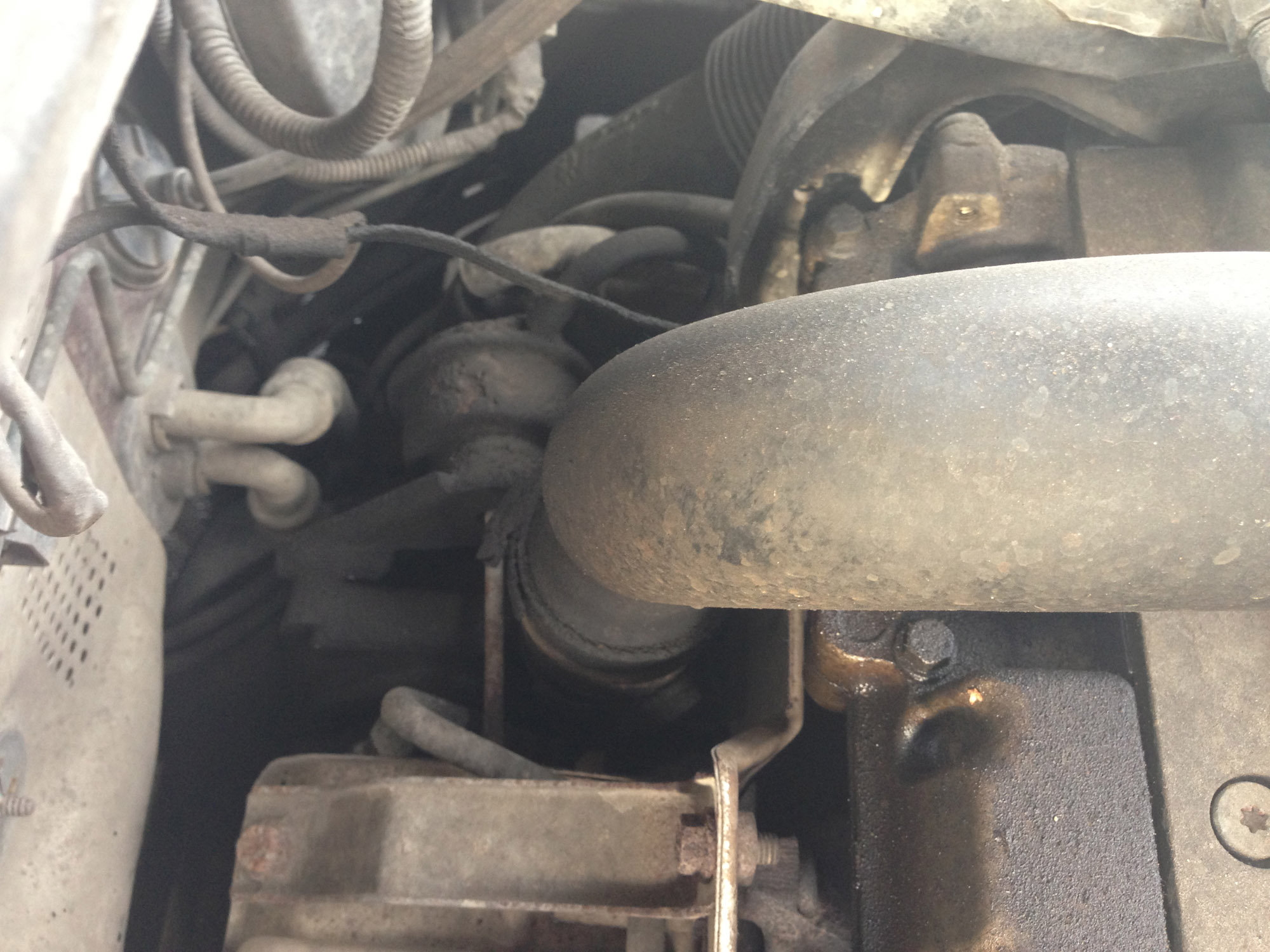але турбує один факт, спотівша клапанна кришка та двигун в районі турби( вона ж вроді ззаду біля моторного щита?) ось фото: