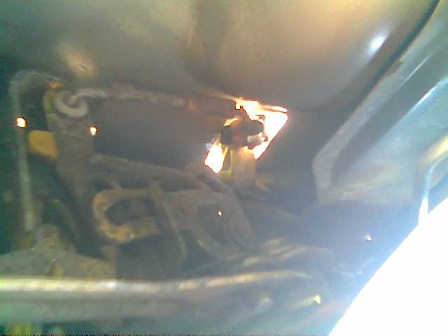 Ну и чтоб добить читателей! Прикол по сцеплению! Самое прикольное - это шайба с разрезом, приваренная на место где дырка в кузове, куда просовывается трос. Я так и не понял ее предназначение. Просто такое впечатление, что родную разворотили или зубилом или прямым попаданием снаряда. А потом приварили эту шацбу. Короче таких вот уродов нужно в лесу на деревьях вешать!