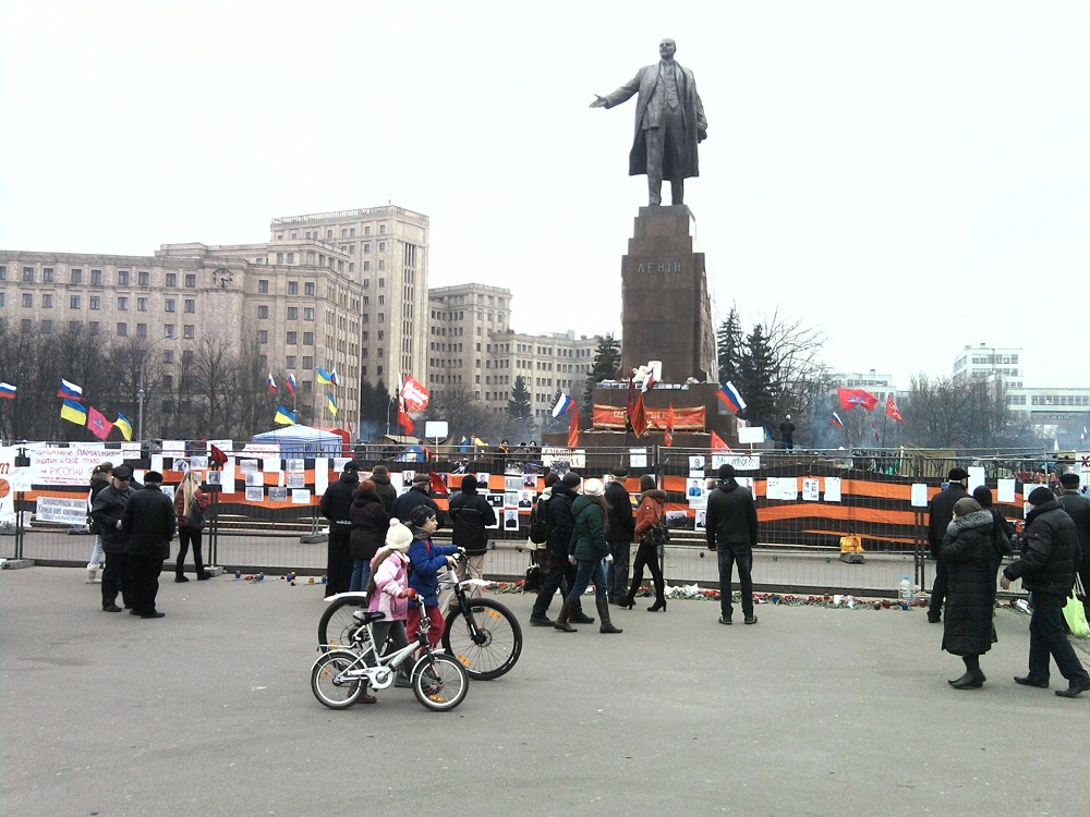 Харьков.Снимки мои, сегодня из-под под памятника ленину. Под ним лагерь защитников. По диалогам:- Одни в россию хотят причем с землей, другие чтоб русский язык не трогали,третьи против бендеровцев( кто такие? не знаю), четвертые видно,что побухать пришли.