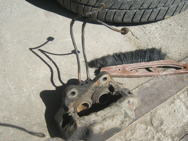 НА суппортах пыльники еще оригинальные, на всех написано Гирлинг. И даже вполне целые, но все равно буду все менять. Даже с одной стороны на передке колодки были Вольво.