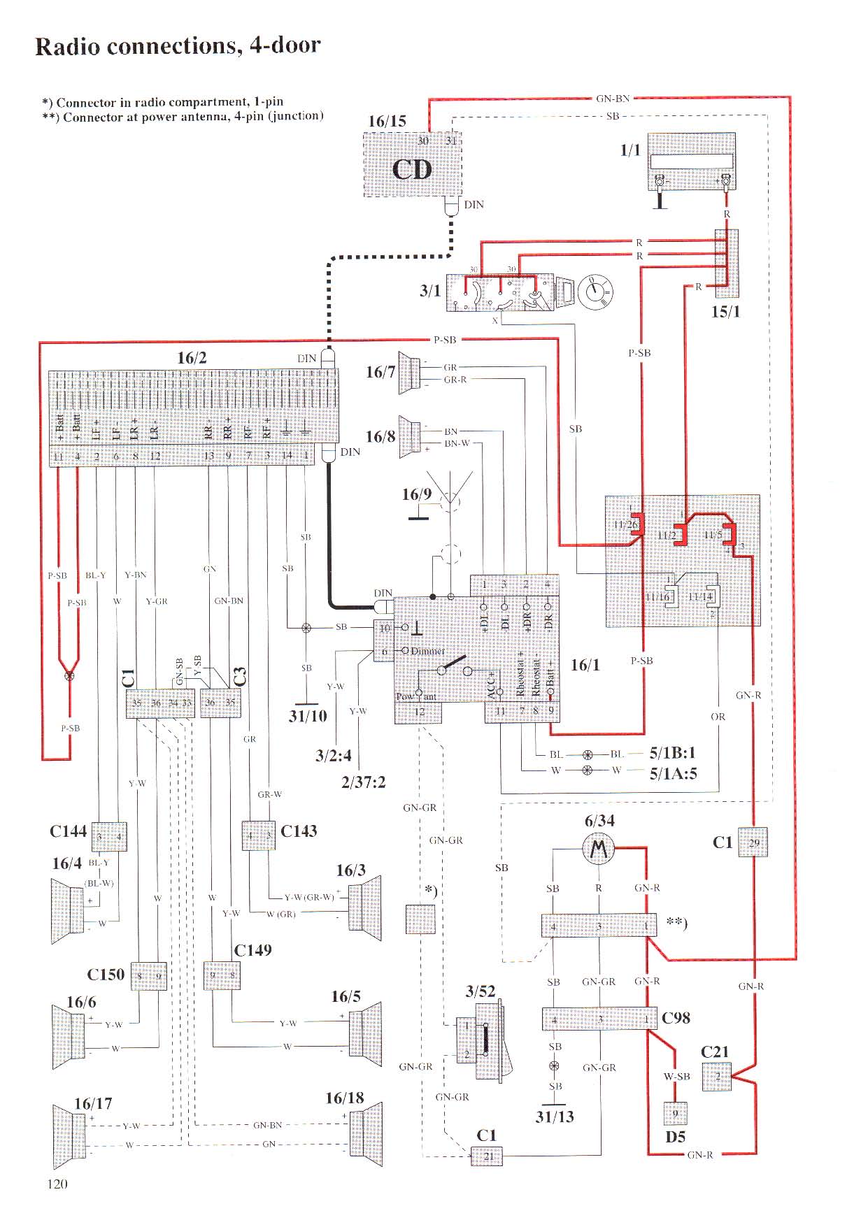 Давно, коли зібрався міняти магнітолу, яка стояла в машині, CR603 на CR605 знайшов таку розпіновку. Думав прийдеться робити перехідник. Але не зробив бо виявилось, що все уже передбачено консрукцією Вольво....роз"єм з CR603 від"єднав, а на його місце стала магнітола CR605. Тому не перевіряв чи все на цьому малюнку відповідає дійсності, але можливо Вам пригодиться.