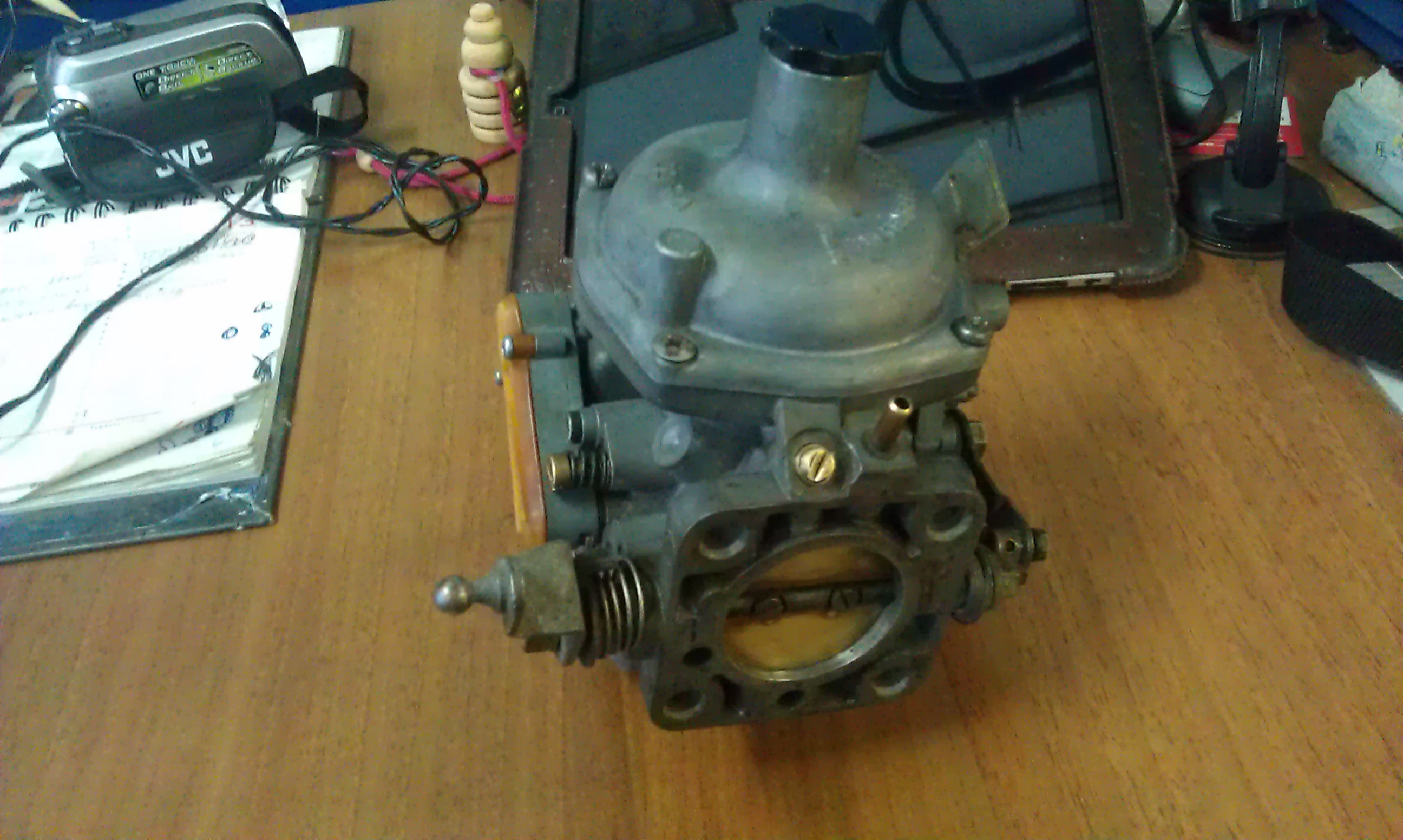 Притёрт по конусу и отрегулирован по подаче топлива. Заменена диафрагма, игла, регулировочный винт, поплавок, ось поплавка, узел пуска холодного двигателя. Ну и конечно помыт. Ибо был получен как кусок грязи. Осталось поставить на машинку и показать видео как он работает. :drag: