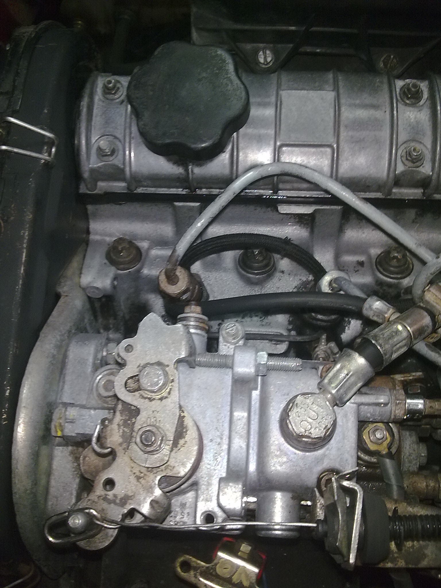Те, що залишилося навколо правої форсунки -- було кольором майже всього двигуна, кришки та насоса