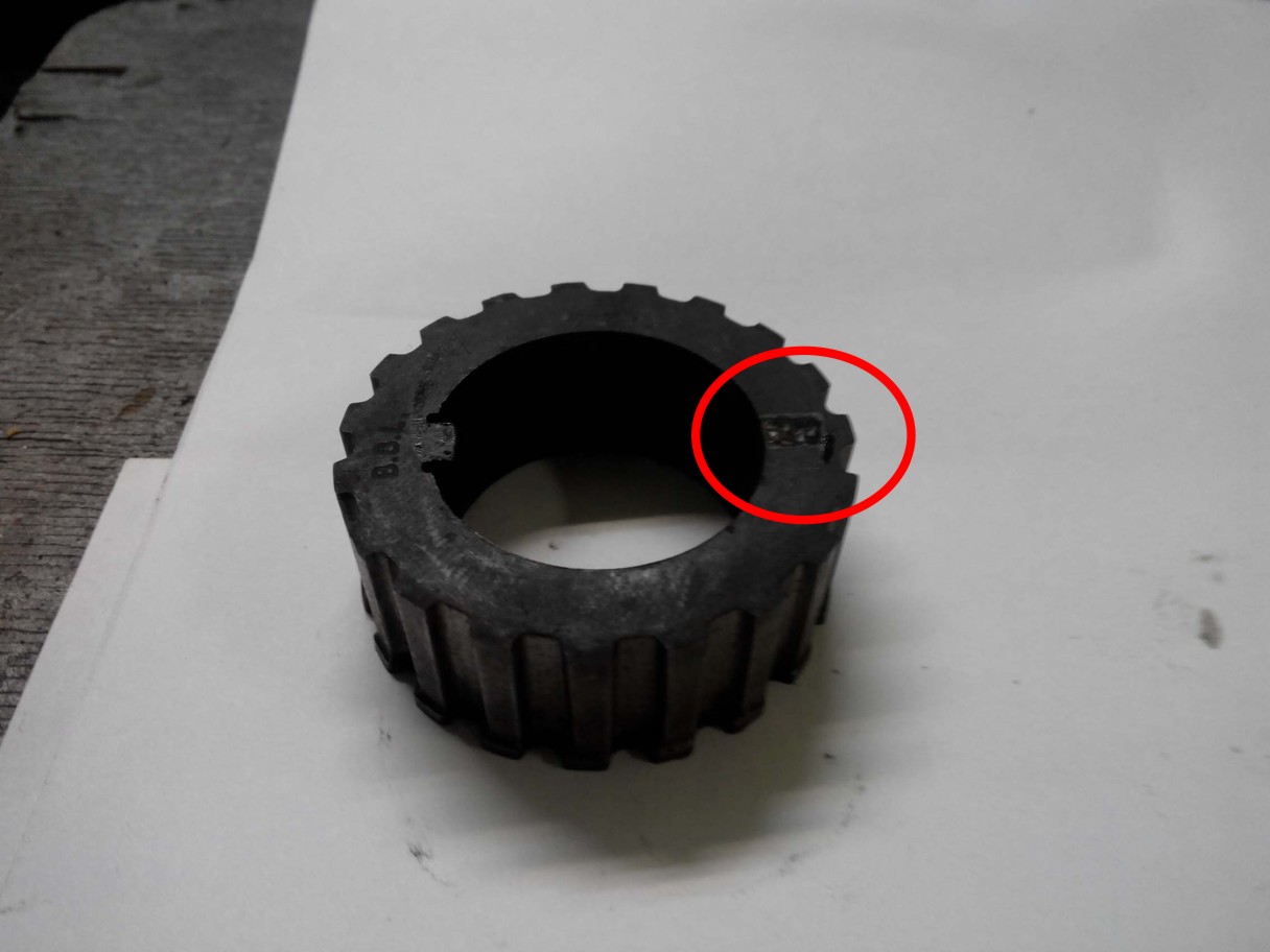 Несколько фото как проверить метку колена. Бывают шкивы реставрированные и не правильно собранные. На самом деле шкив состоит из двух частей.