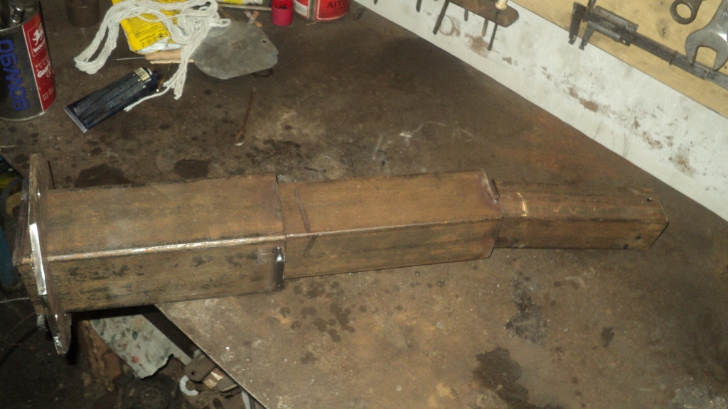 Новый телескоп сделан из квадратных труб 100*100, 80*80, 60*60, для ограничения хода труб приварен квадрат 8*8 но его приходилось "фрезеровать" до 7*8. Телескоп получился вполне ничего и складывается и раскладывается без заеданий.