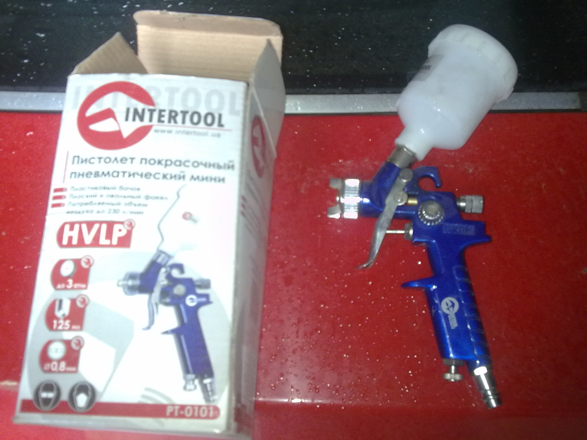 Час від часу дозволяю купити собі якийсь новий інструмент. Тому, після покупки компресора (вже досить давно) почав обростати пневматичними аксесуарами -- шланги, продувка, пістолет для мовіля, підкачка шин і т.д. Коли дійшла черга до фарбувального пістолета, то зупинився на такому собі універсальному.