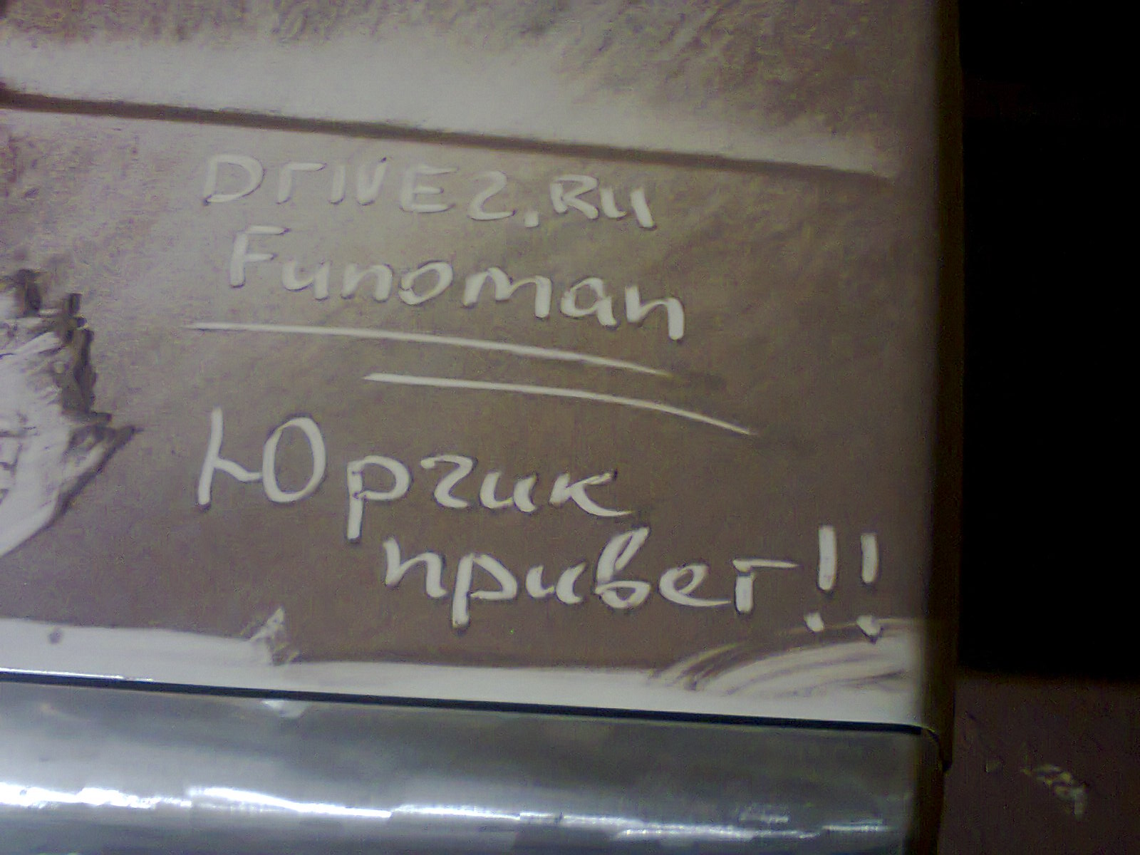 P.S. А чё у тебя там на машине грязным пальцем по грязному написяно? Шо за Юрчик?Это не тот который никак красную двойку не добьёт?
