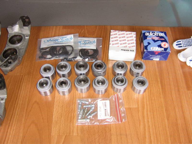 Наконец то дошли руки! Правда как говорят - "первый блин комом" оказалось, что на поршнях сделал маленькое скругление, со стороны которой они входят в колодцы суппортов, да и после гальваники и шлифовки их почти не осталось... и не могу поршня всунуть внутрь... закусывает манжет. Короче нужно теперь доработать немного. Но задние все таки собрал на основе старых поршней. Из 12-ти отобрал всего 4, остальные заменю. А так все красиво выходит, главное чтоб не травили.