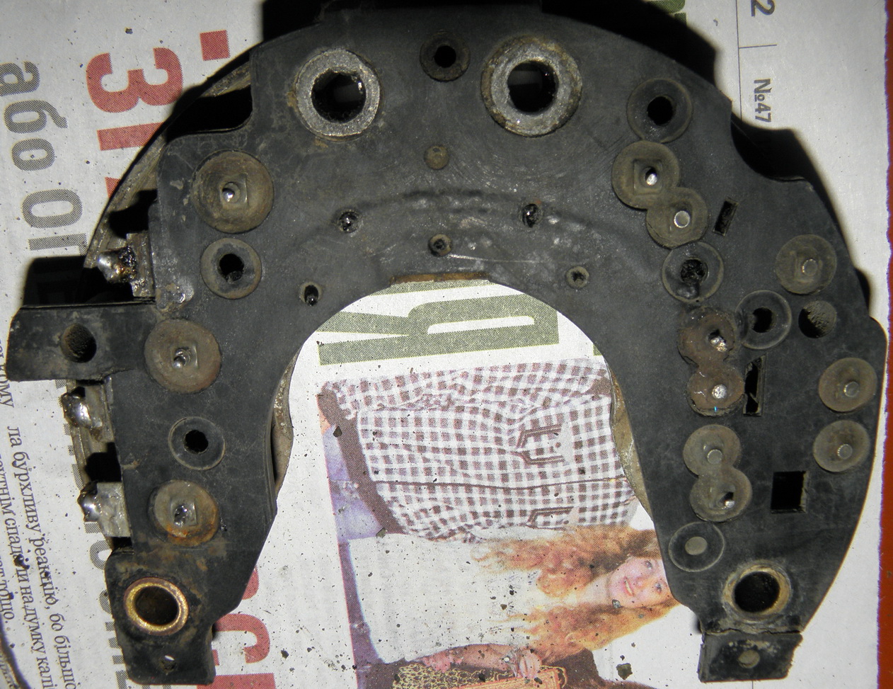 Накрылся генератор, пробиты несколько диодов... Началось с того, что садился аккумулятор, потом я аккумулятор хорошо зарядил от зарядки, подключаю, а в машине что-то коротит - оказалось генератор (оттуда дымок пошел). Друзья, подскажите, чем недорогим можно заменить. Какие варианты походят. У меня двигадель Volvo В200К. Или возможно надо только диоды заменить, но есть ли они в продаже? Фото прилагаю...