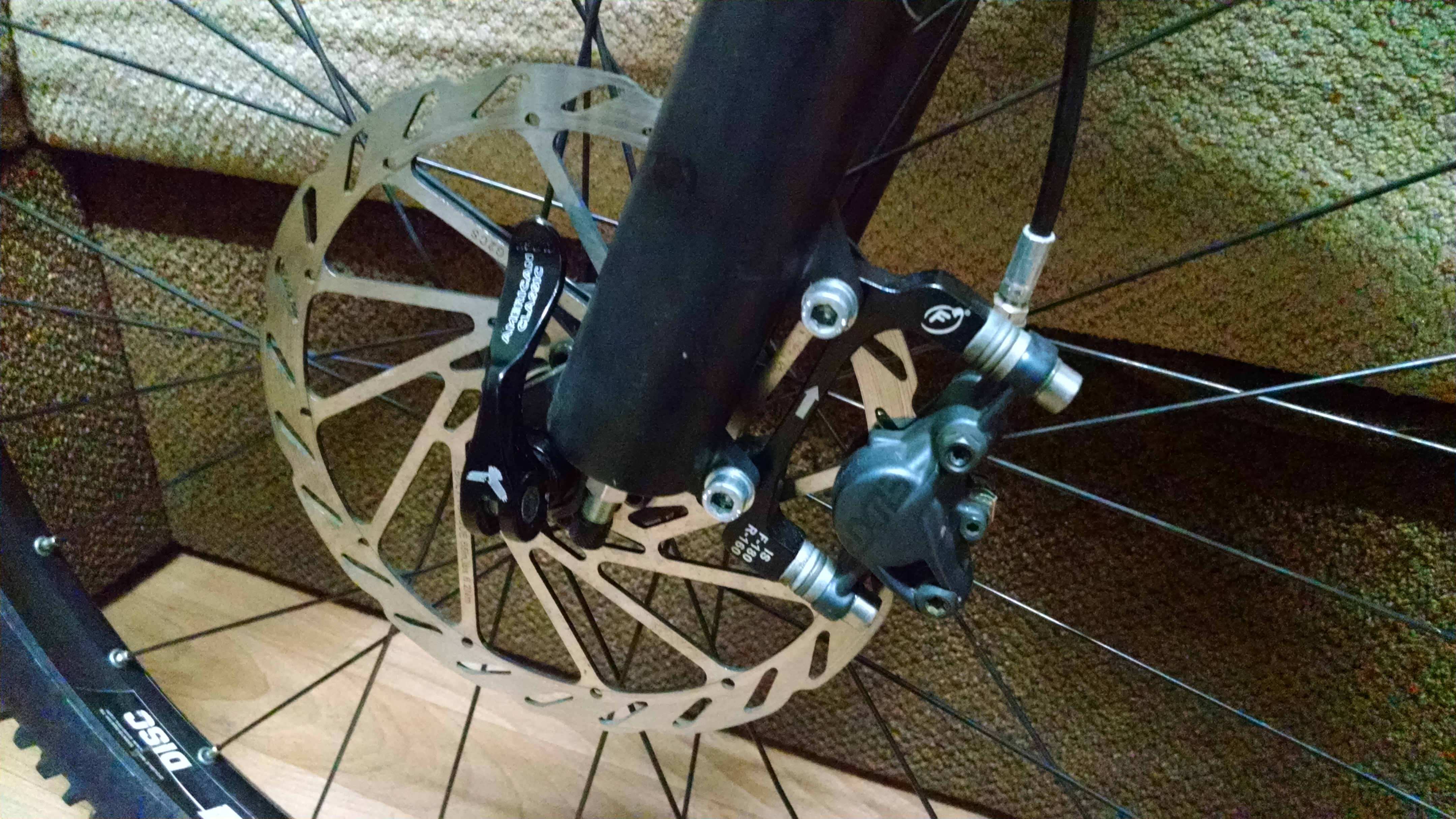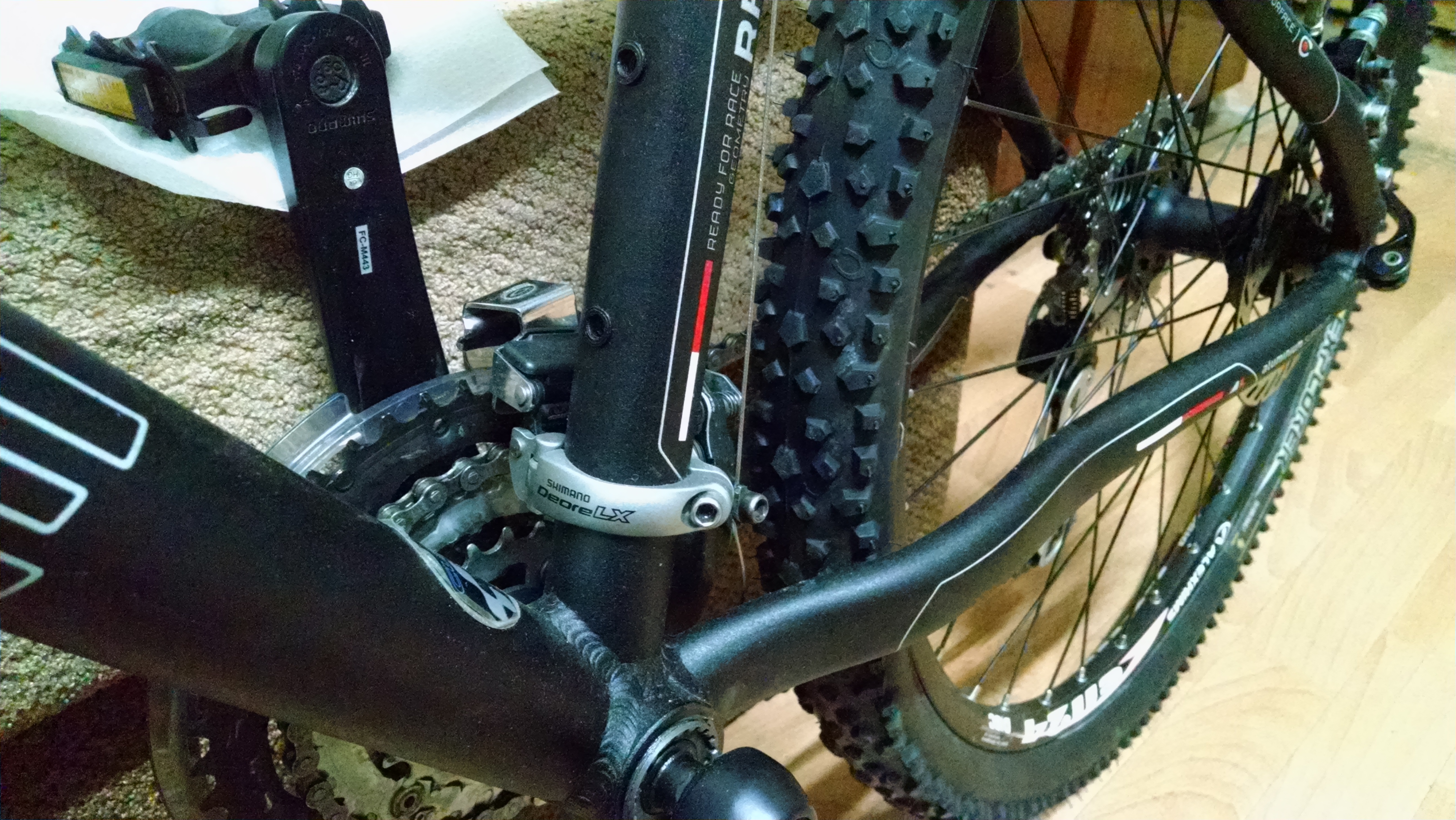Из хорошего, рама алюминий 7005(прочнее и чуть легче 6061), вилка еще двухкамерная Реба с локаутом на руле(сейчас только однокамерные), которая позволяет сделать мегаплюш, ХТ-шные втулки и переклюки, Авидовская (эликиры-7)гидравлика с передним 180 ротором( нафиг там 180 сам не пойму), пистонированные обода, да вроде из главного и все.