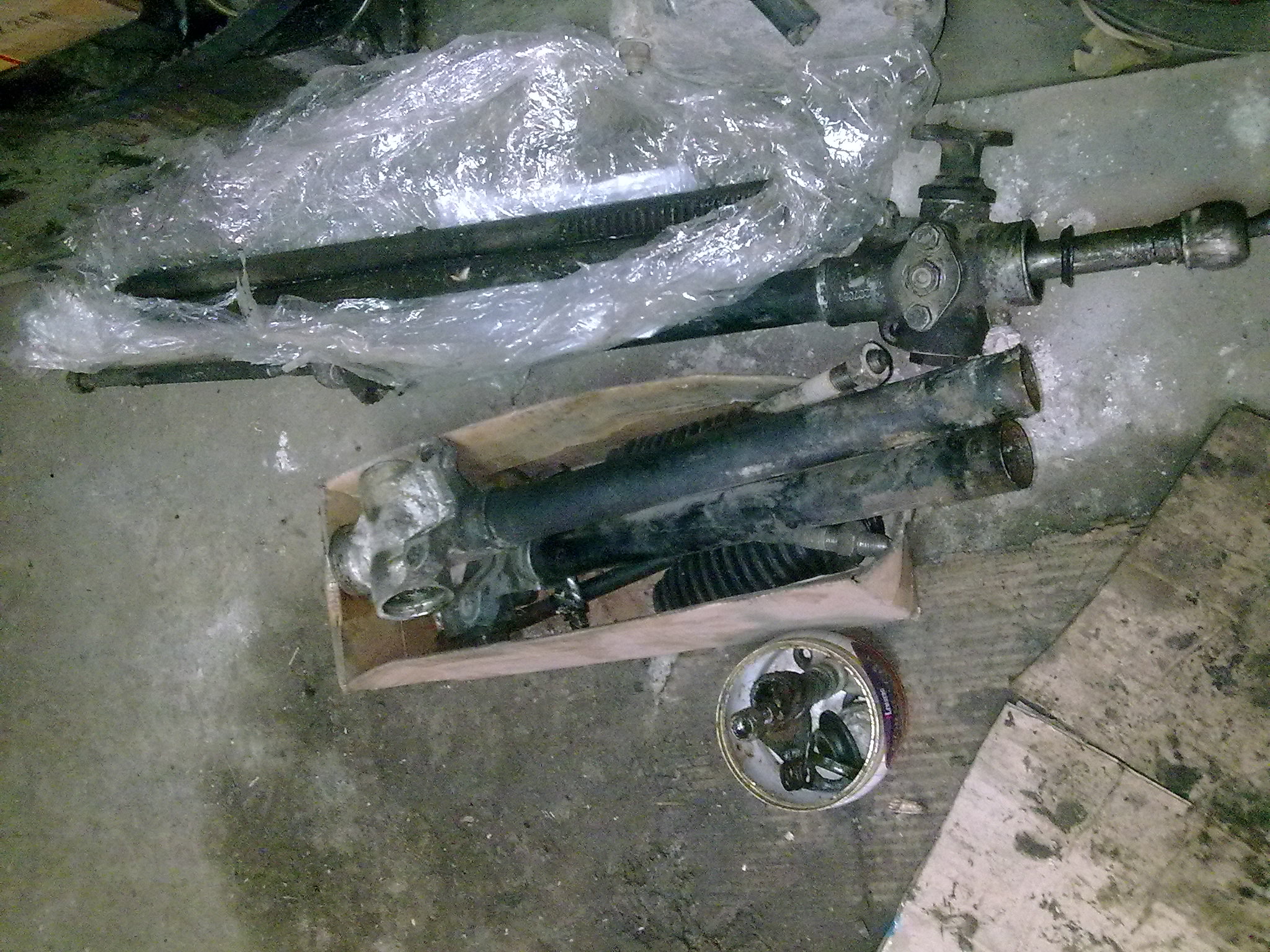 Рейка шліфована, втулка нова виточена, тяги старі (але нормальні), наконечники б/у. До речі -- той наконечник, що міняв рік назад -- пильник тріснув (пластмасовий, гамняний, купляв на екзісті), наконечник розбитий.